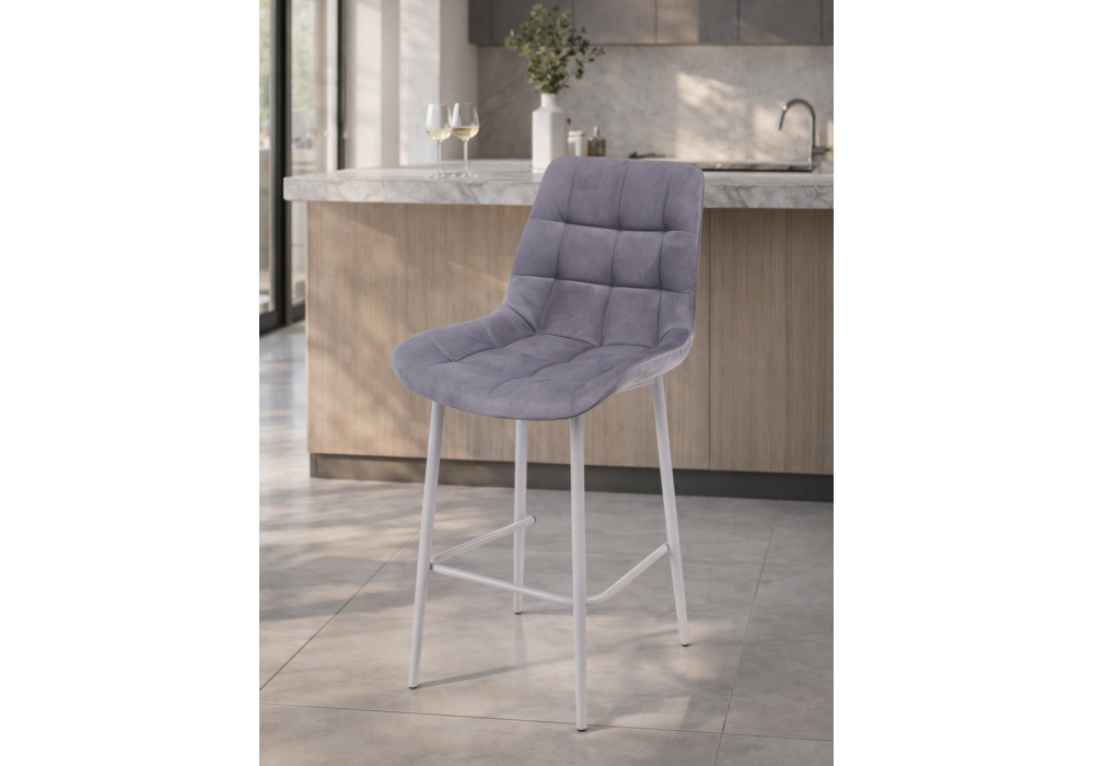 Материал каркаса - металл; Материал сиденья - велюр; Материал обивки - велюр; Цвет ножек - серый; Ширина - 50; Глубина - 58; Высота - 99; Ширина сиденья - 46; Глубина сиденья - 41; Высота сиденья - 63;