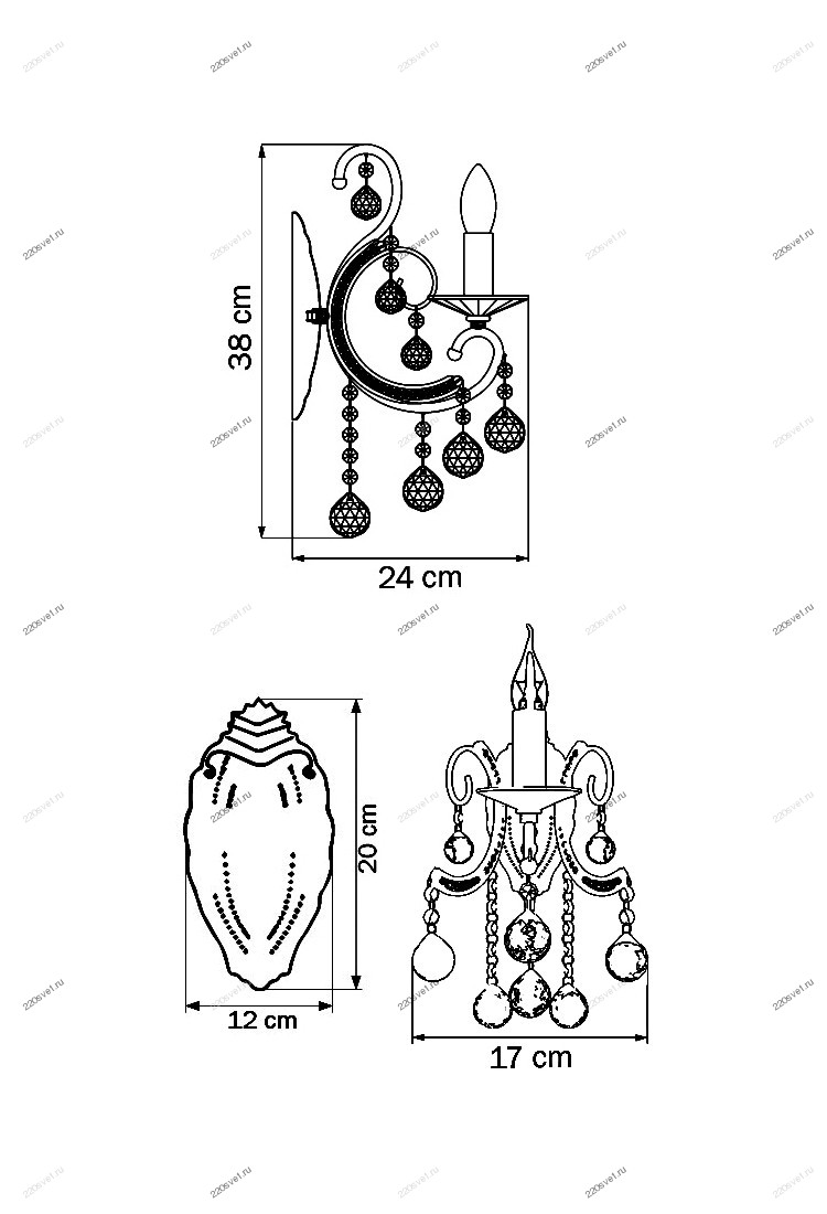 - Форма плафона: Без плафона, Свеча