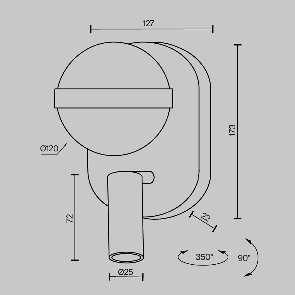 - Форма плафона: Цилиндр, Шар