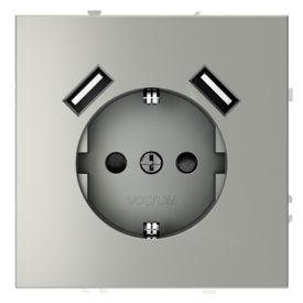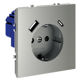 Накладка для розетки с заземлением и защитными шторками, с USB A+C Voltum S70 VLS001005 (сталь)