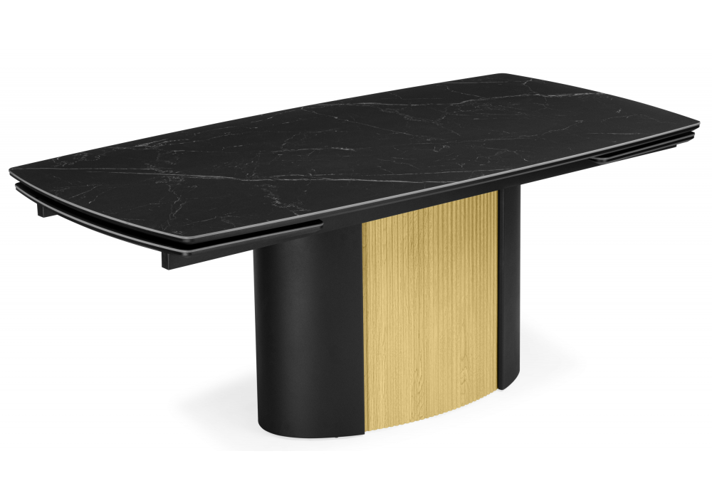Керамический стол раскладной 180(220)x90 Woodville Бовер черный мрамор дуб натуральный 631623 в Волгограде