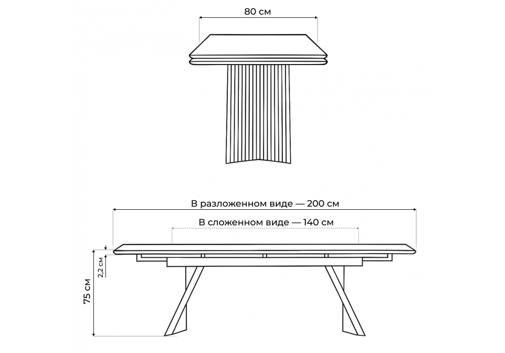 - Длина стола в разложенном виде: 2000