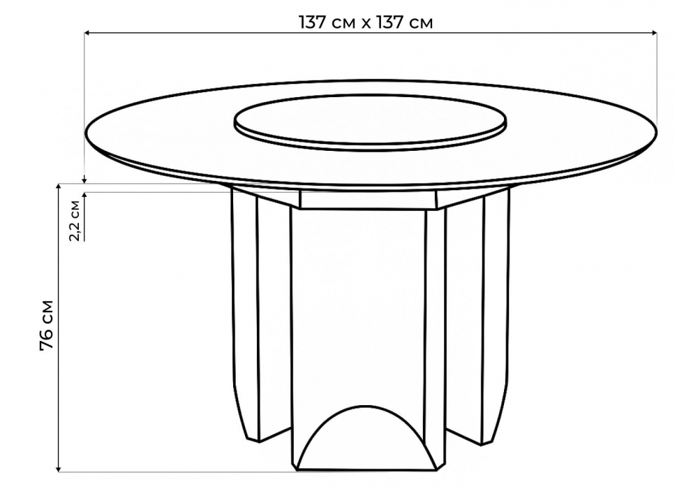 Квадратный стол размером 137 х 137 см с роскошной керамической столешницей и инновационным вращающимся подносом. За ним комфортно разместятся до 10 человек, что делает его идеальным выбором для больших семей и приема гостей.