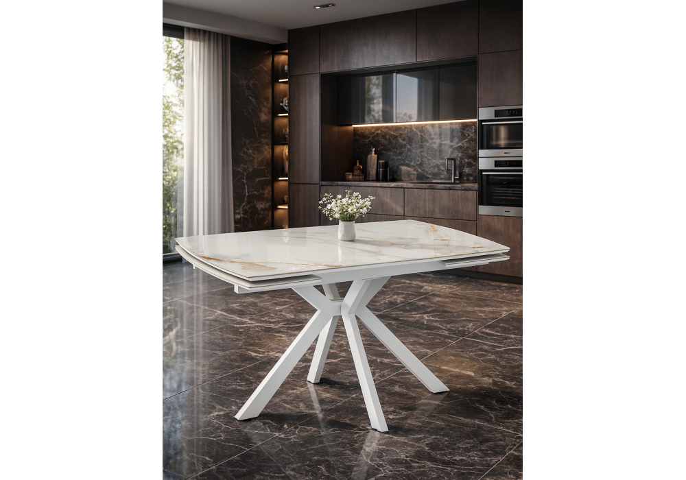 Купить "Керамический стол Woodville Катчел-2 120(180)x80 calacatta gold / белый 632671"