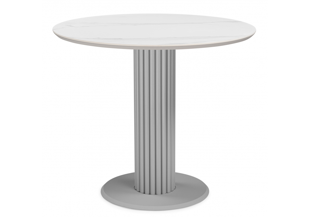 Материал каркаса - металл; Материал столешницы - Керамика; Цвет ножек - серый; Ширина - 90; Высота - 75; Длина - 90;