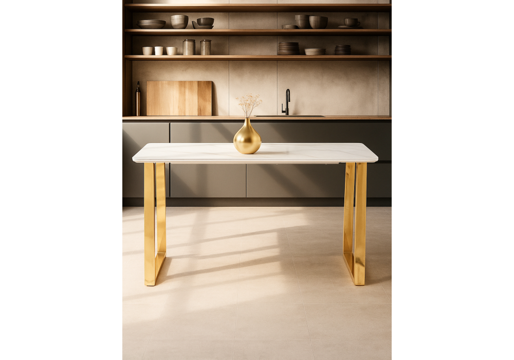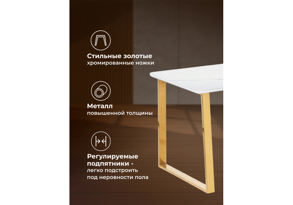 Керамический стол Woodville Селена 2 140х80х77 белый мрамор / золото 571412 в Волгограде