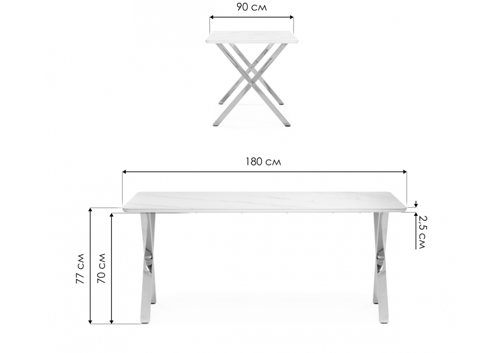 Материал каркаса - металл; Материал столешницы - Керамика; Ширина - 90; Высота - 77; Длина - 180;