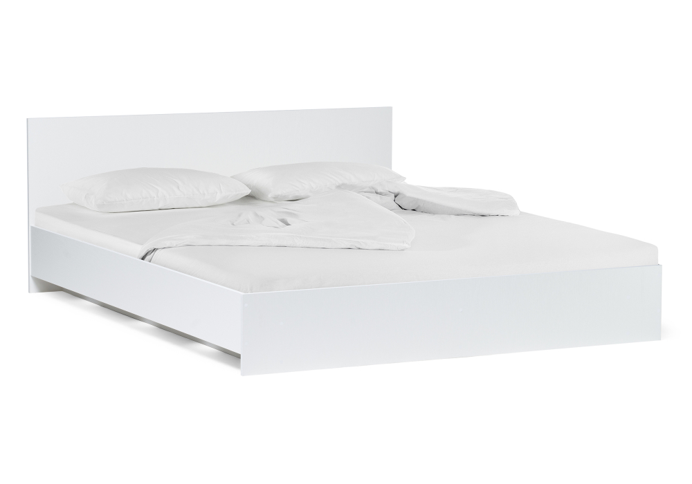 Материал каркаса - ЛДСП; Ортопедическое основание - в комплекте; Материал ортопедического основания - настил; Цвет каркаса - Белый; Размер спального места - 160 х 200; Длина кровати - 203,2; Ширина кровати - 163,5; Высота изножья - 27; Высота изголовья - 70;