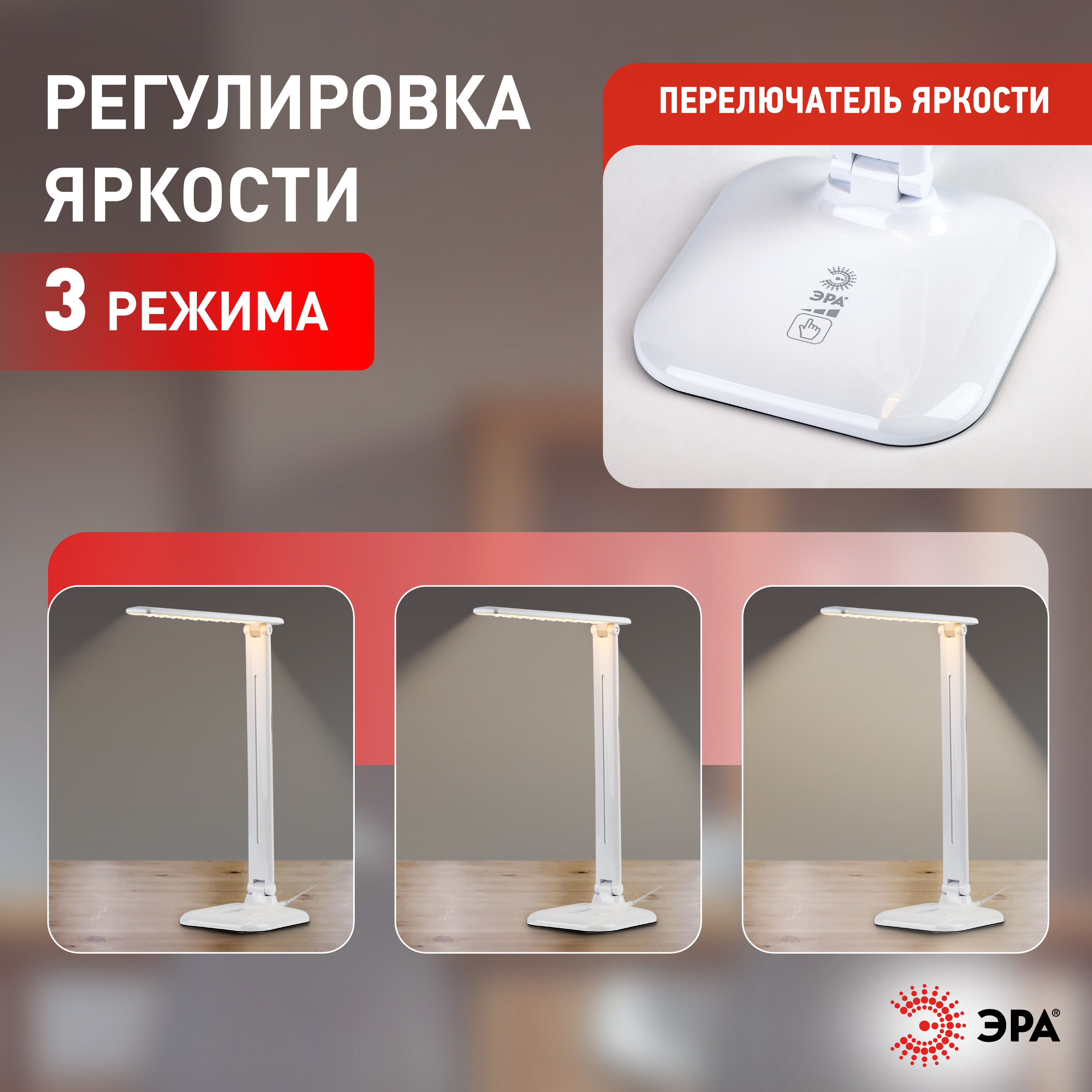 Офисные настольная лампа российского производителя ЭРА, коллекция - NLED-462, модель - NLED-462-10W-W, стиль светильника - современный.