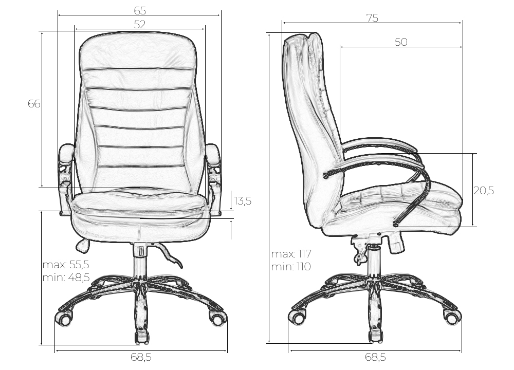 - Глубина сиденья: 500 мм