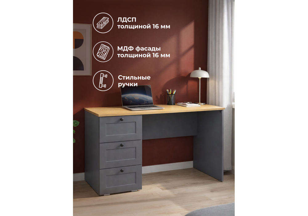 Письменный стол Woodville Опра серый графит / дуб золотой craft 676811 в Волгограде