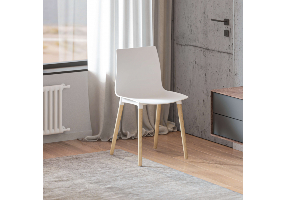 Материал каркаса - Массив дуба; Материал сиденья - Пластик; Материал ножек - Массив дуба; Цвет каркаса - Белый; Цвет сиденья - Белый; Цвет ножек - Натуральный; Ширина - 44; Глубина - 49; Высота - 80; Ширина сиденья - 44; Глубина сиденья - 39; Высота сиденья - 46