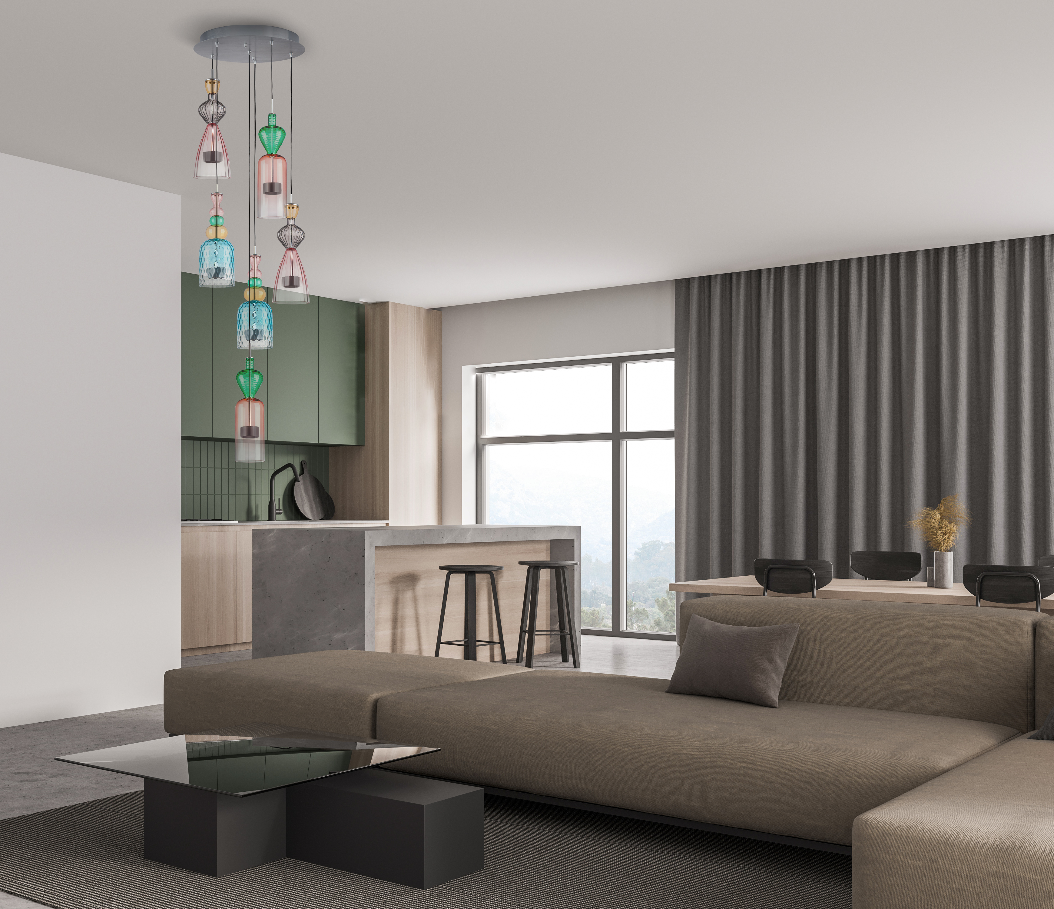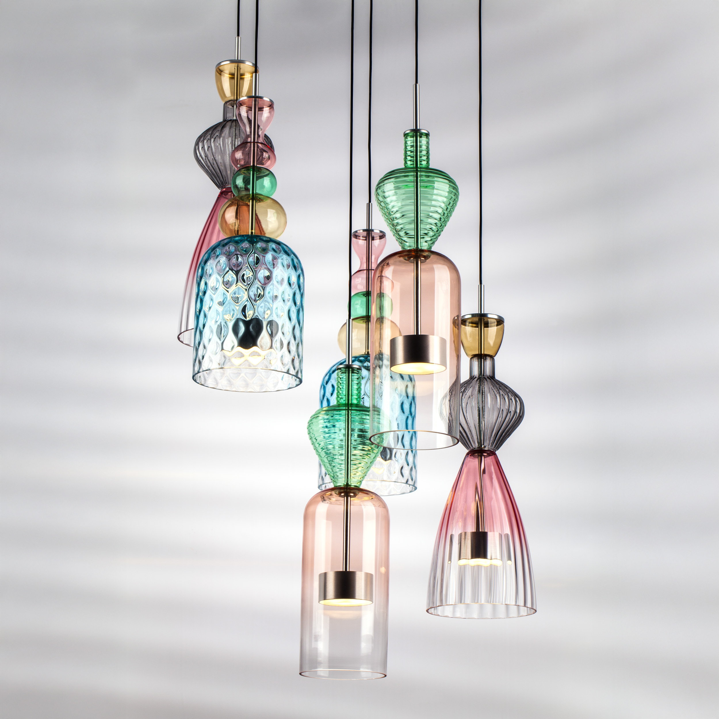 - Цвет плафонов: Разноцветный