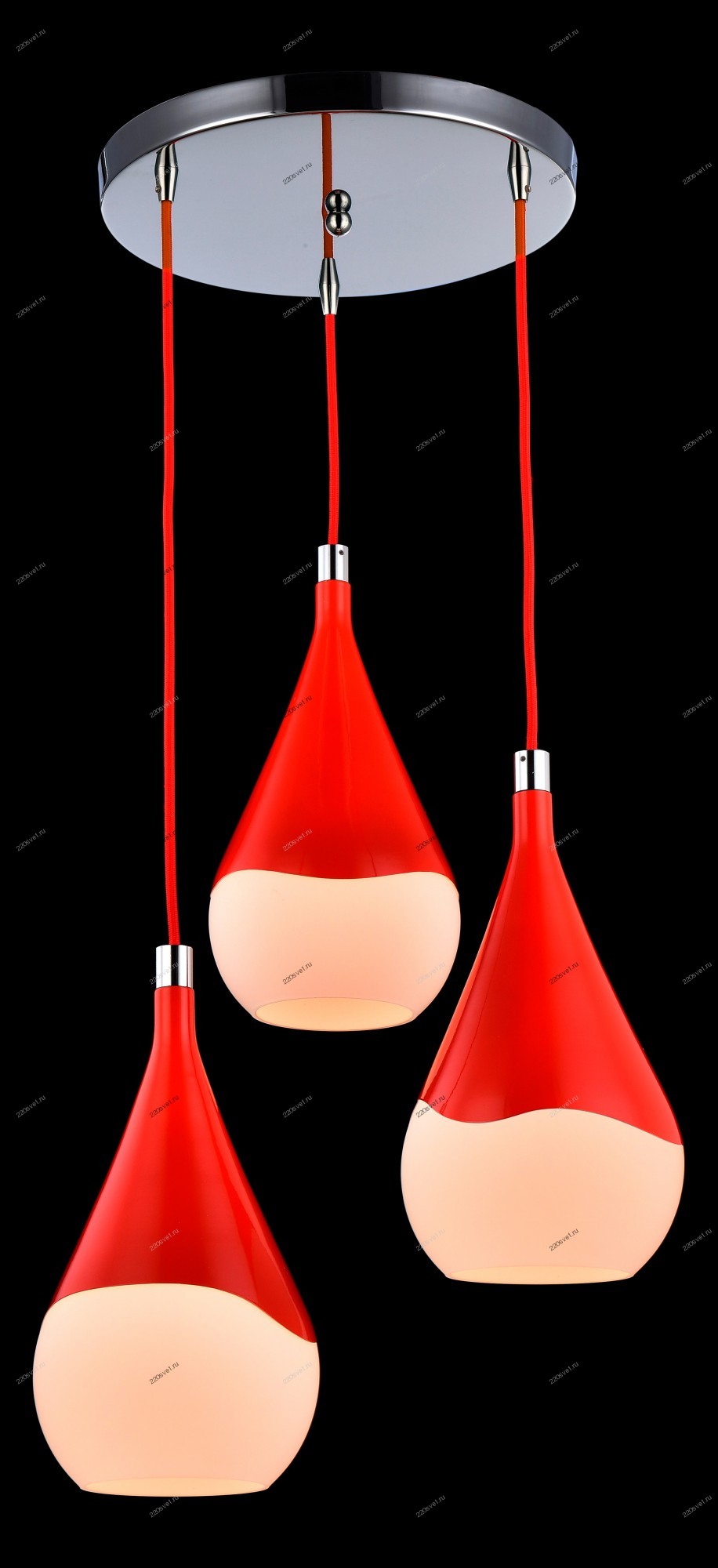 Подвесная люстра Maytoni Iceberg F014-33-R Немецкого производсва – уникальное сочетание высокого качества и удивительных фактур. Этот светильник Современного стиля хорошо подойдет Для кафе, ресторанов и придаст помещению мягкий и приятный свет. Плафоны белые из стекла. Арматура красная из металла. Кол-во ламп - 3шт. Общая мощность 180W