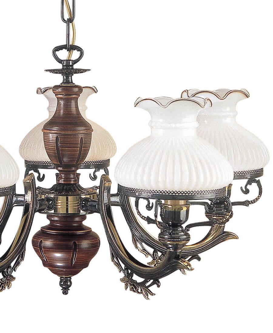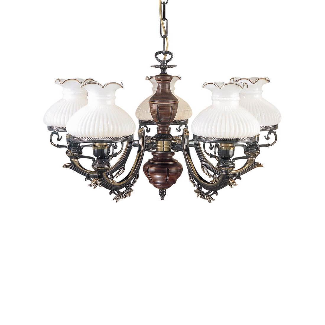 Подвесная люстра Reccagni Angelo L 2810/5 Итальянского производсва – уникальное сочетание высокого качества и удивительных фактур. Этот светильник Классического стиля хорошо подойдет Для кафе, ресторанов и придаст помещению мягкий и приятный свет. Плафоны белые из стекла. Арматура бронза из металла. Кол-во ламп - 5шт. Общая мощность 300W