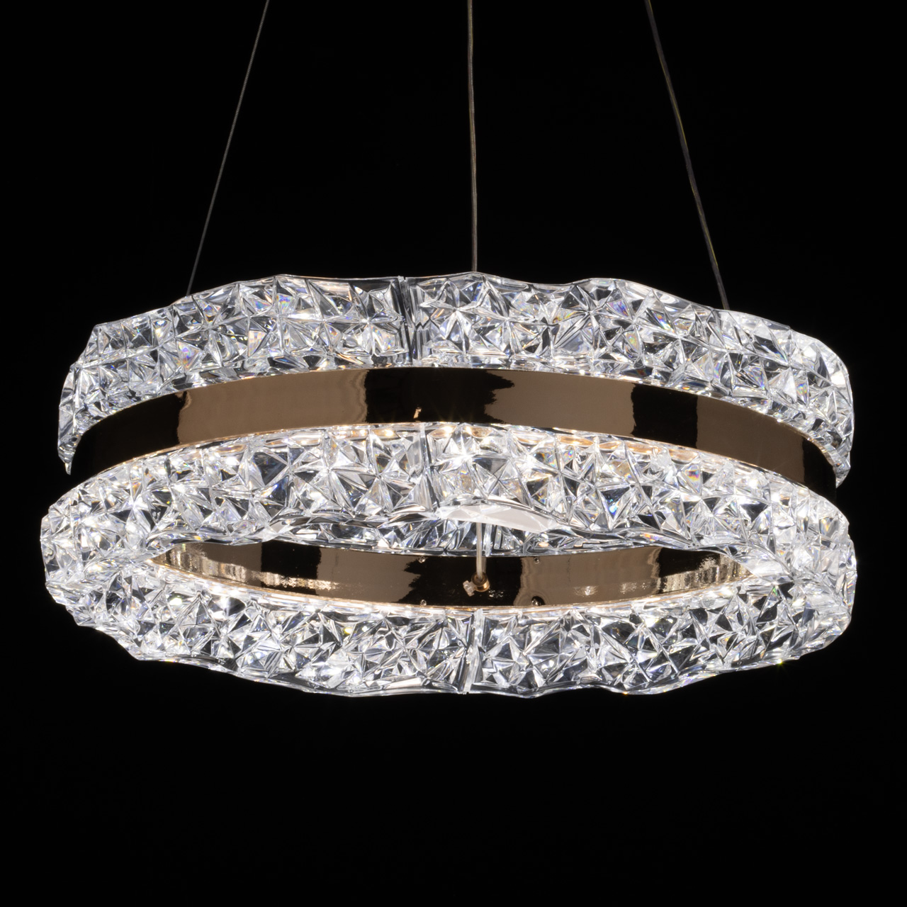 Потолочный светильник Платлинг подвешен на прочных металлических тросах, что придаёт ему лёгкость и воздушность. Общая высота светильника составляет 90 см, что делает его уместным даже в помещениях с высокими потолками. Основание светильника выполнено из качественного металла и гальванизировано в элегантный золотой цвет. Этот золотистый оттенок придаёт изделию роскошный вид и гармонично сочетается с различными стилями интерьера — от классического до современного минимализма. Плафон светильника изготовлен из фактурного акрила, который не только обеспечивает равномерное рассеивание света, но и добавляет интересные текстурные акценты в общий дизайн. Светильник Платлинг оснащён встроенными светодиодами мощностью 68W, что обеспечивает яркое и эффективное освещение. Светильник способен осветить помещение площадью до 19 квадратных метров, что делает его идеальным решением для гостиных, кухонь или детских. Светодиоды отличаются долговечностью и экономичностью, что позволяет значительно сократить расходы на электроэнергию по сравнению с традиционными лампами. Светильник оснащен пультом, что дает возможность регулировать температуру света от 3000-6000 K.Лаконичный и современный дизайн светильника Платлинг соответствует актуальным тенденциям в мире освещения. Простота форм и отсутствие лишних деталей делают его универсальным элементом, который легко вписывается в любой интерьер. Светильник может использоваться как самостоятельный источник света, так и в сочетании с другими осветительными приборами, создавая гармоничное освещение в пространстве.