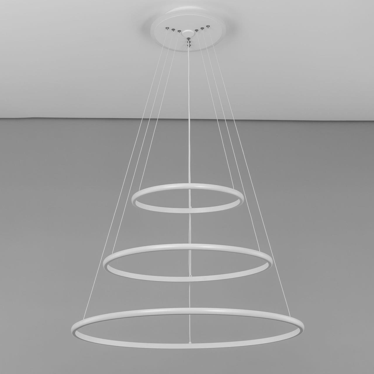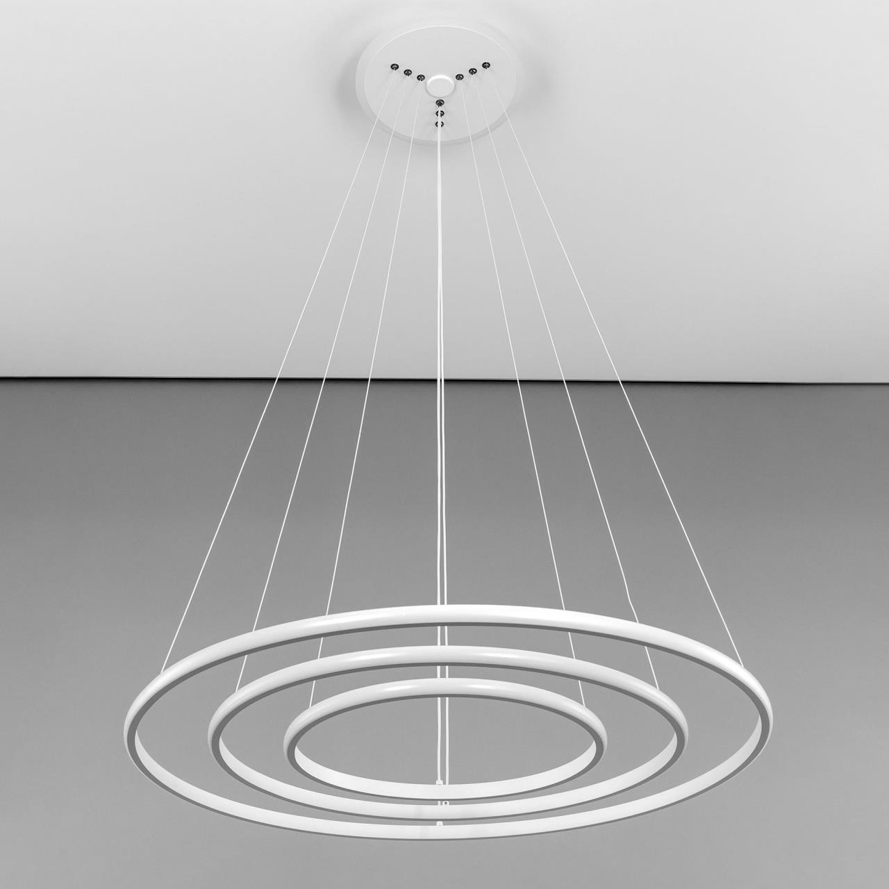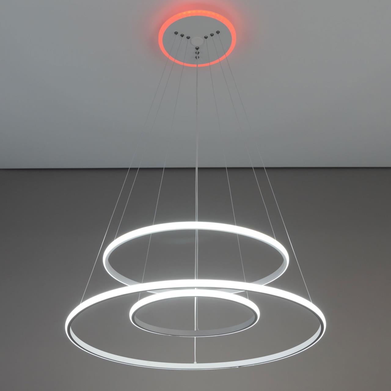 Подвесная светодиодная люстра CL731A090E от производителя Citilux относится к коллекции Неон Смарт с голосовым управлением, входит в экосистему Citilux SMART. Светильником можно управлять: из приложения на смартфоне по Wi-Fi, при наличии интернета, с помощью голосовых помощников Алиса и Маруся, а также пультом дистанционного управления и настенным выключателем. Люстра на тросах, в форме каскада из трех подвесных колец, высоту и угол наклона каждого из которых можно изменить. Корпус изготовлен из алюминиевого сплава, окрашенного в белый цвет. Рассеиватель оптический полимер, цвет белый матовый. Крепление люстры подходит для всех типов потолков, в том числе натяжных. Тип крепления – планка. Модель оснащена мощными светодиодами, с возможностью плавной регулировки яркости от 10 до 100%. Цветовая температура регулируется в диапазоне от 3000К до 5500К, с возможностью настроить любые оттенки теплого, нейтрального и холодного света. В основании светильника установлена независимая цветная подсветка RGB. Мощность изделия 110Вт, световой поток 6800Лм, площадь освещения до 21м² . страна бренда Дания.Купить модель CL731A090E спешите в интернет-магазине 220svet.