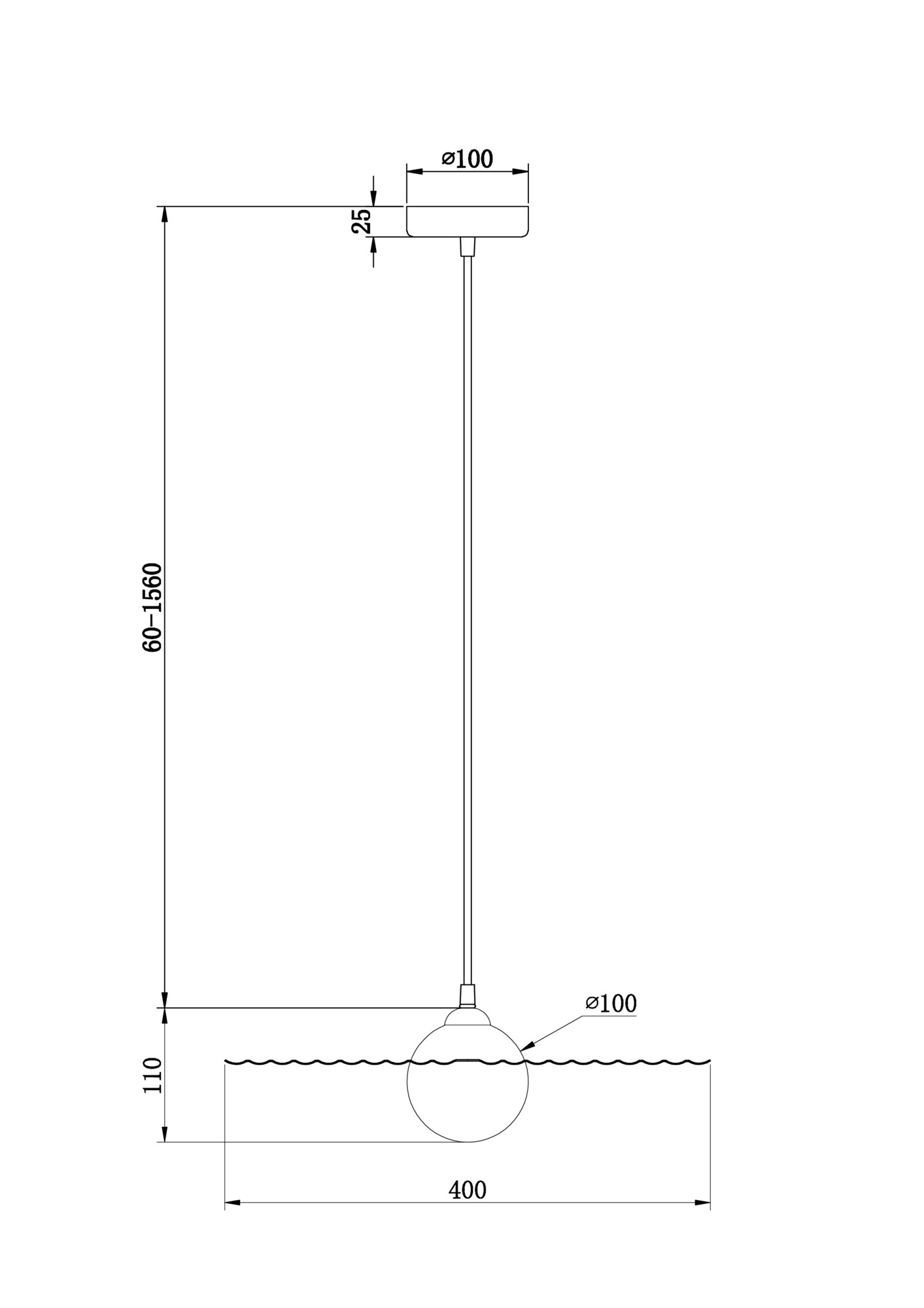 - Высота плафона (абажура): 100