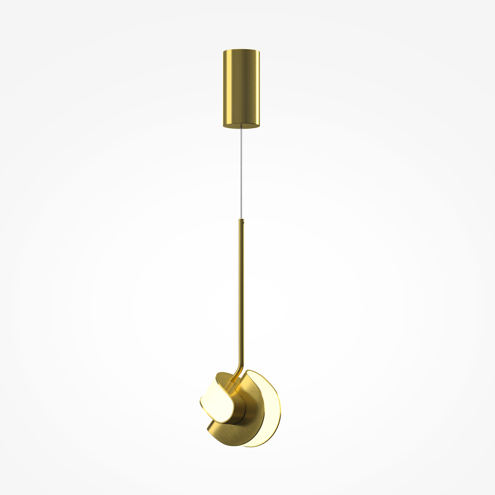 Динамичный дизайн с футуристичной эстетикой, сочетание двух полусфер. Арматура: алюминий цвета сатинированной латуни. Рассеиватель: матовый акрил, установленный заподлицо. Магнитная потолочная чаша без видимых креплений. Два источника света для равномерного верхнего и нижнего освещения. Трехступенчатый переключатель температуры (2700K-3000K-4000K). Рекомендуется для одиночного использования и композиций с разной высотой подвеса. Создает объемное многосценарное освещение.