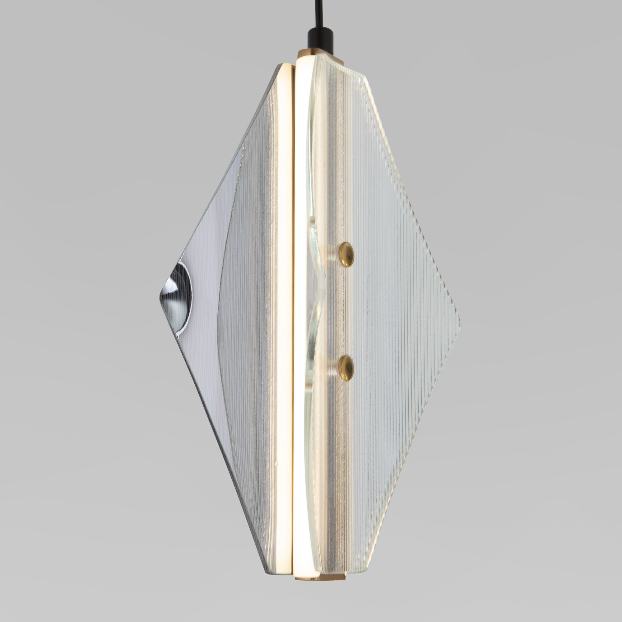 Необычный дизайн Glare, сочетающий строгие линии и мягкое сияние, приковывает взгляд и создает атмосферу уюта и современности. Геометрический плафон ромбовидной формы с рельефной текстурой преломляет свет, создавая игру теней и бликов.