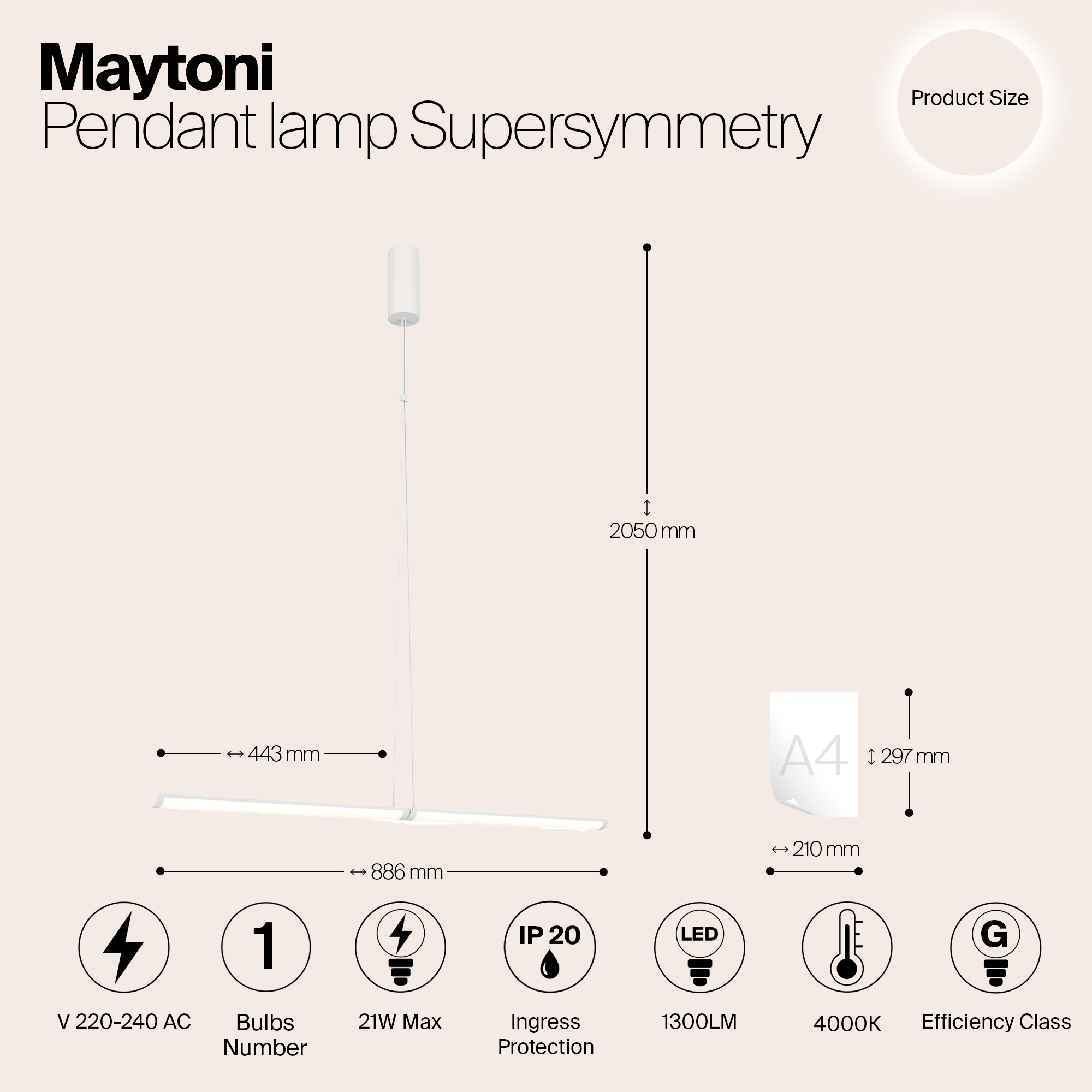 - Высота: 2050 мм (205 см)