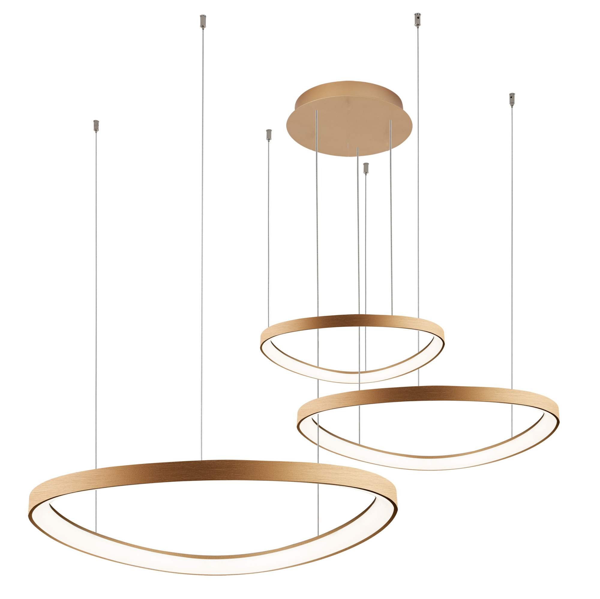 Изделие: Подвесной светильник Арт.: ZRS.2556.03, Мощность/Лампа: 146Вт/Epistar LED, Световая температура: 4000К, Напряжение: 180в-240в, Коллекция: Innra, Цвет: Золото, Материал: Алюминий, сталь, акрил, Бренд: ZORTES, Размеры в миллиметрах: Ширина/Диаметр-450мм+650мм+850мммм, Максимальная регулируемая высота: 2000мм, Площадь освещения-26квм, Cтиль: Скандинавский, минимализм, хай-тек , Помещение: Спальня, Кухня, Детская, Холл, Коридор, Столовая, Лоджия, Мансарда ,Гардеробная, Кладовая, Веранда, Санузел. Световой поток в люменах-11900. Гарантия 2года.