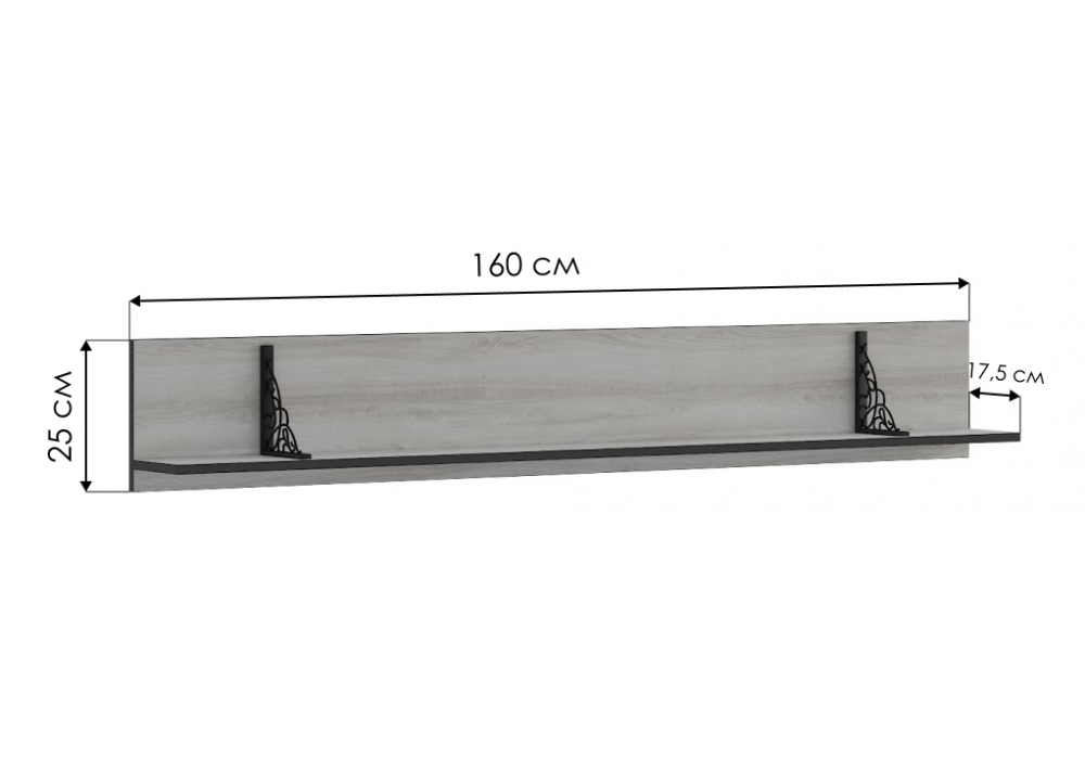Материал каркаса - ЛДСП; Цвет каркаса - Дуб золотой; Ширина - 160; Глубина - 17,5; Высота - 25