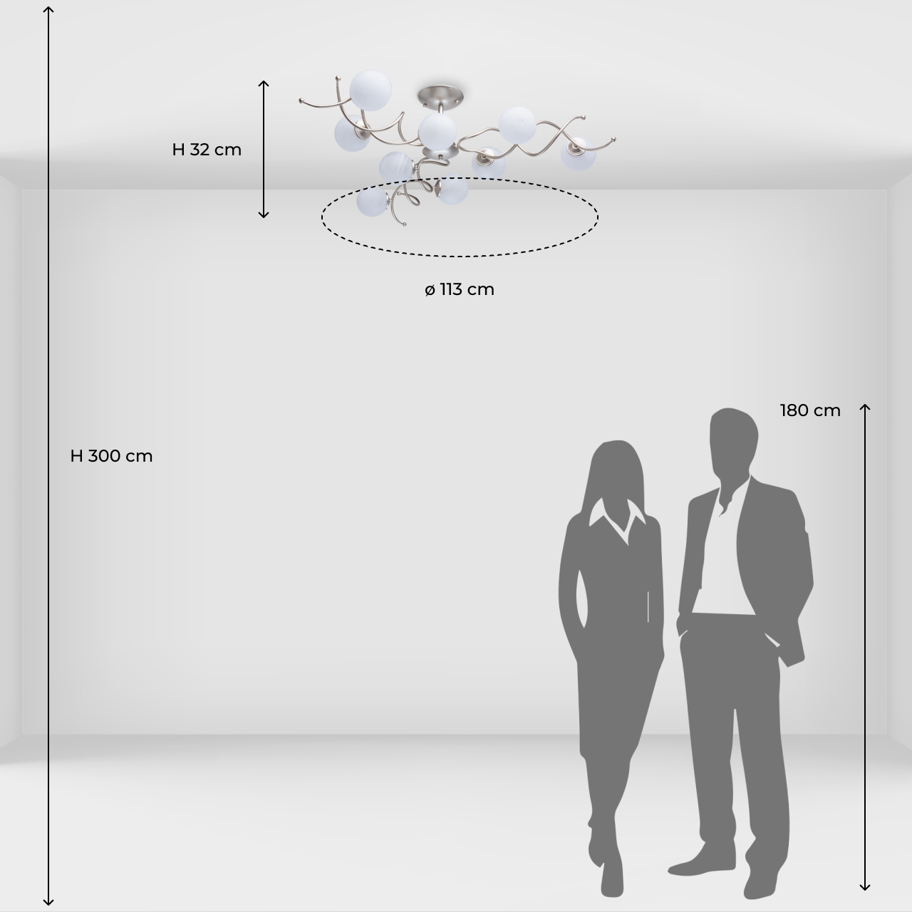 Оригинальный трендовый элегантный дизайн.Большой диаметр и матовые плафоны, направленные в разные стороны, обеспечивают широкий угол светового потока и комфортный мягкий свет.Близкое расположение к потолку дает возможность разместить люстру в помещениях с невысокими потолкамиОригинальная витая конструкция цвета перламутрового золота и матовые сферические плафоны делают светильник необычным и очень стильнымБольшая семья дает возможность комплексного освещения помещений
