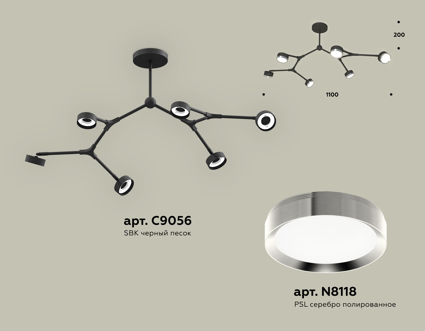 - Цвет плафонов: Серебряный