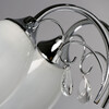 Основание светильника выполнено из металла, гальванизация в цвет хрома. Потолочная чаша, корпус, держатели плафонов изготовлены по технологии токарной обработки, рожки и завитки - прокат на роликовом станке.Светильник декорирован стеклянными плафонами, отлитыми в форму, с последующим матированием внутренней поверхности. Подвески из декоративного стекла в форме миндаля.