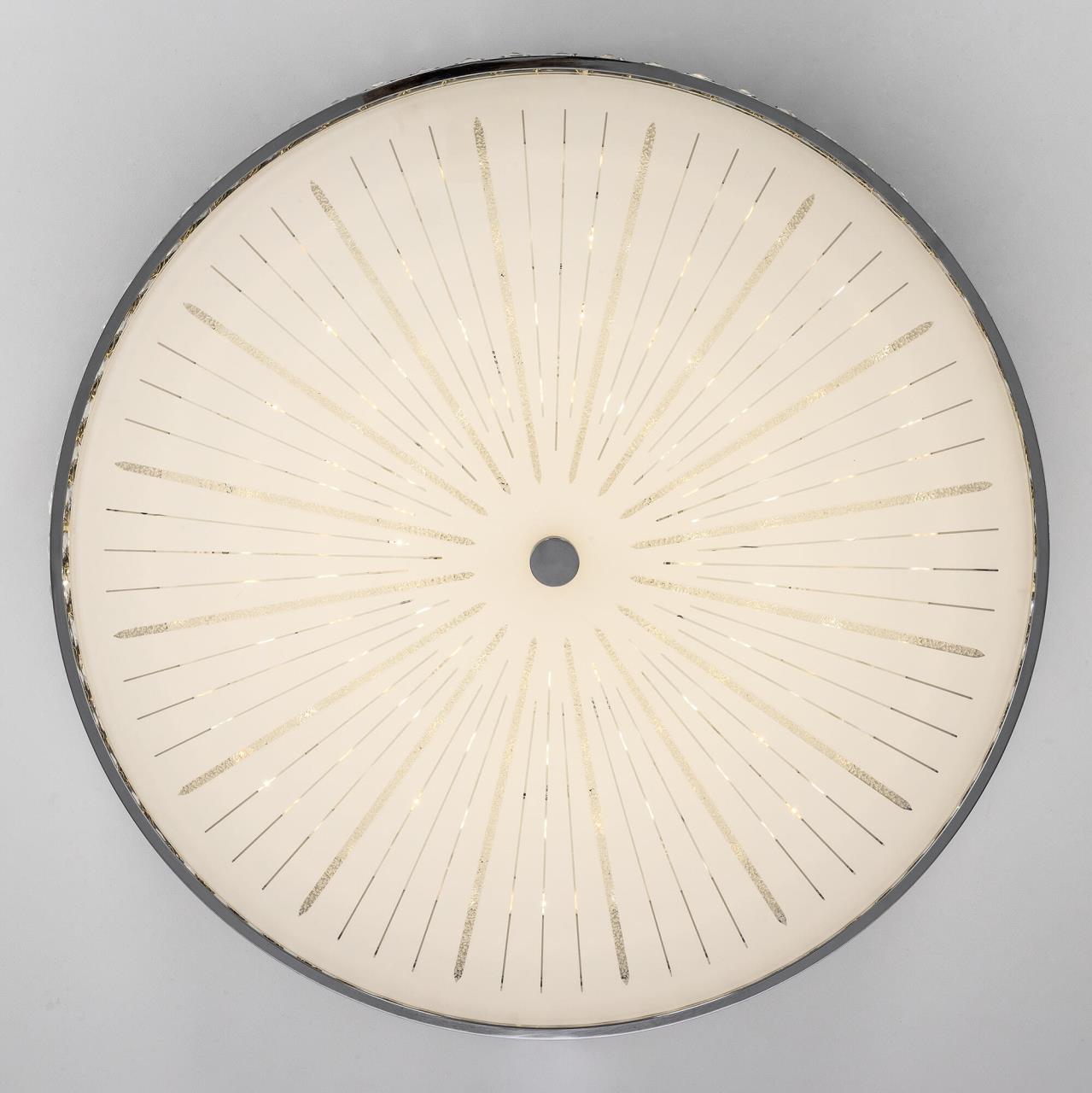 Хрустальная потолочная люстра Citilux Портал CL32410G1 выполнена в стиле современной классики. Корпус металлический, цвет глянцевый хром. Боковая часть светильника украшена хрустальными элементами с классической огранкой, в нижней части установлен стеклянный глянцевый рассеиватель с лучистым рисунком.