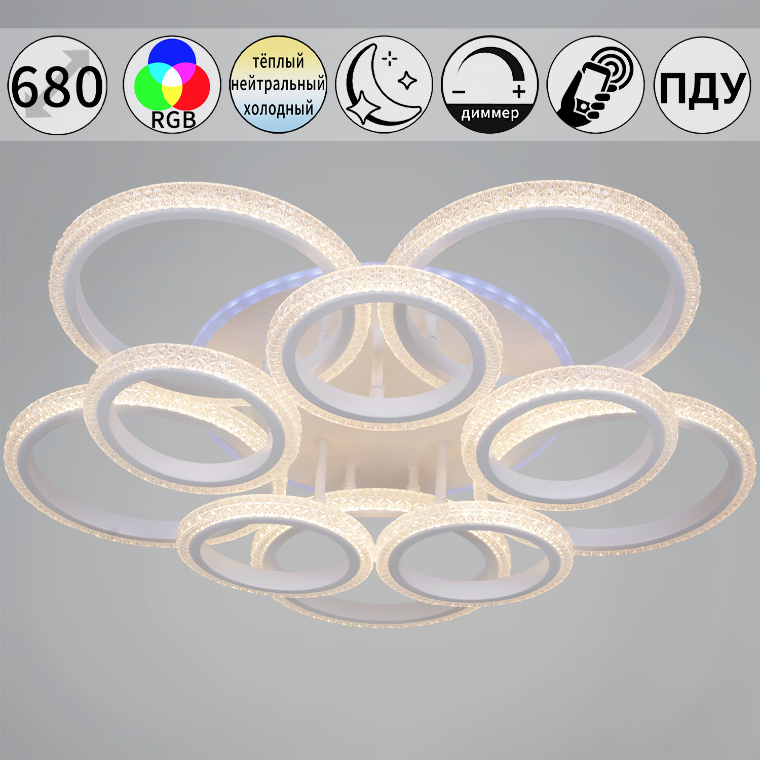 - Технические особенности: С пультом ДУ, С диммером, Управление с телефона