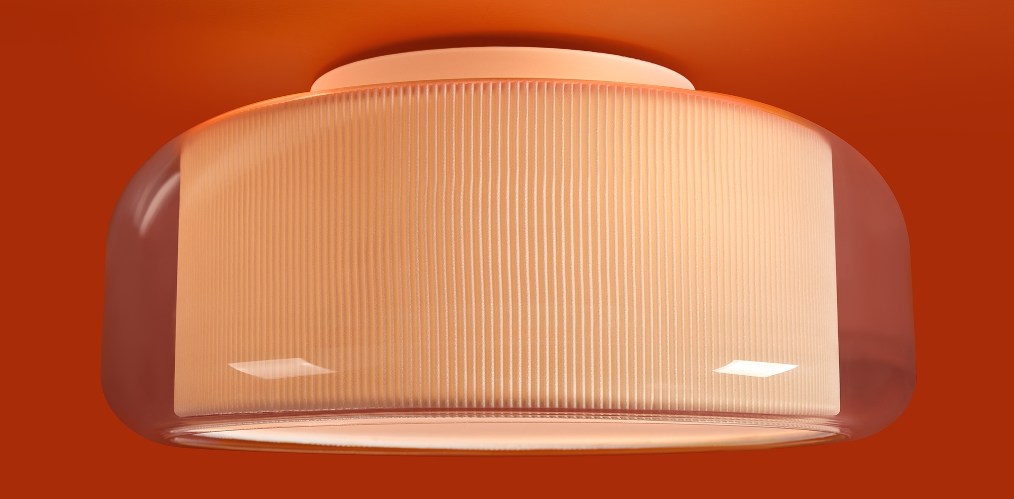 Сочетание стекла и тканевой плиссировки для мягкого рассеянного света. Лампы E27 (в комлекте). Особенность плафонов - их многослойность. В серии представлены подвесной, потолочные и настенный светильники.