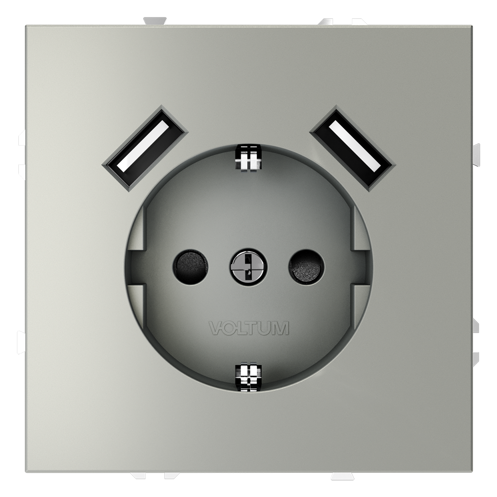 Купить "Розетка встраиваемая с заземлением и защитными шторками, 16А, с USB, A+A Voltum S70 VLS040405 (сталь)"