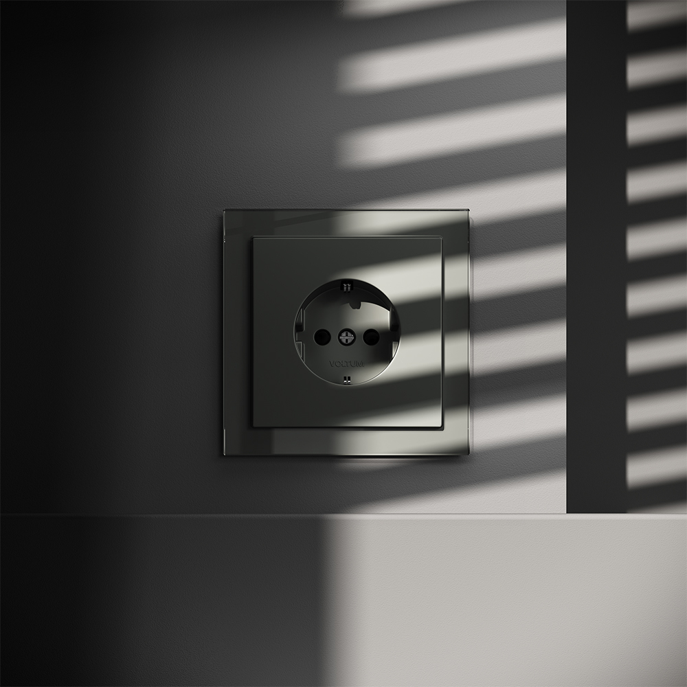 Купить "Розетка встраиваемая с заземлением и защитными шторками, 16А Voltum S70 VLS040206 (титан)"
