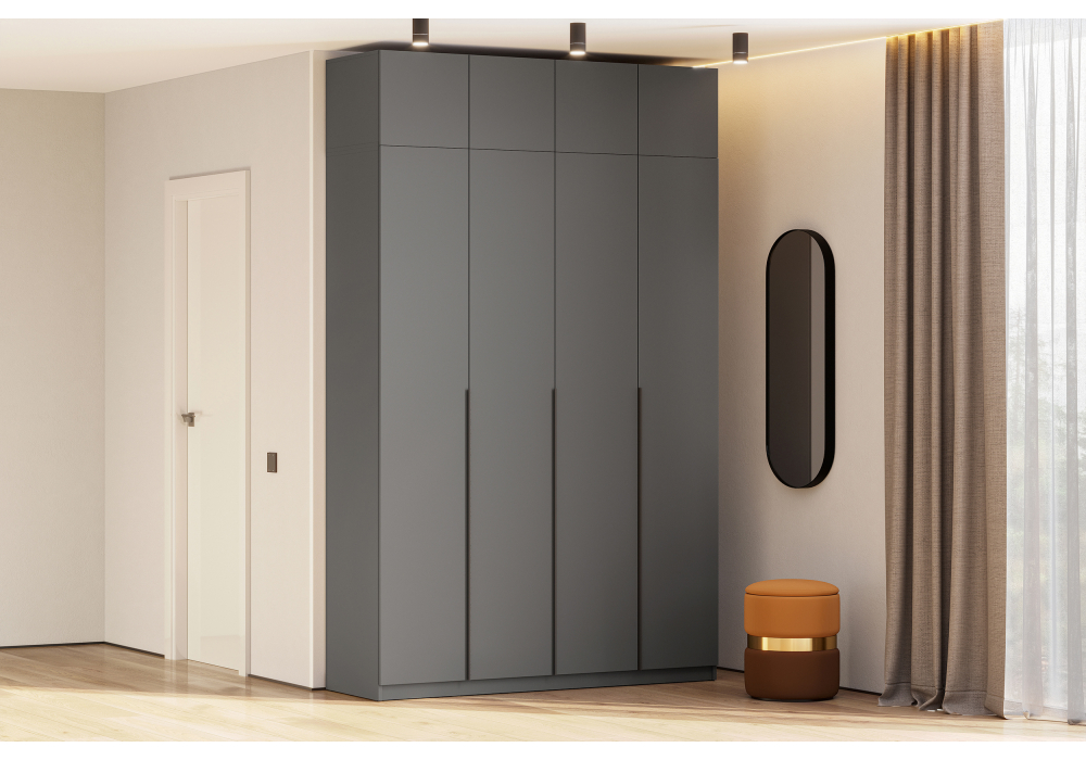 Шкаф комплектация 3 Woodville Даиго с антресолью графит серый текстурный 676152 в Волгограде