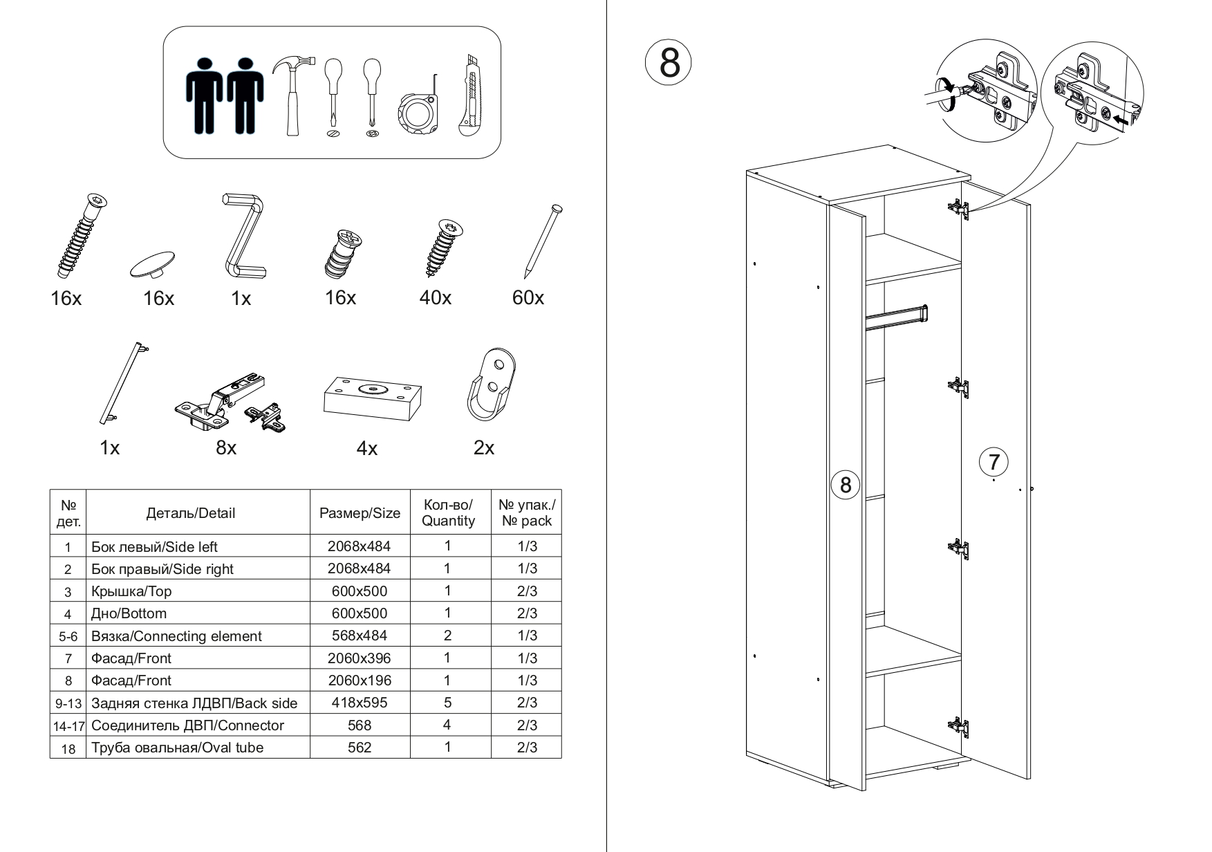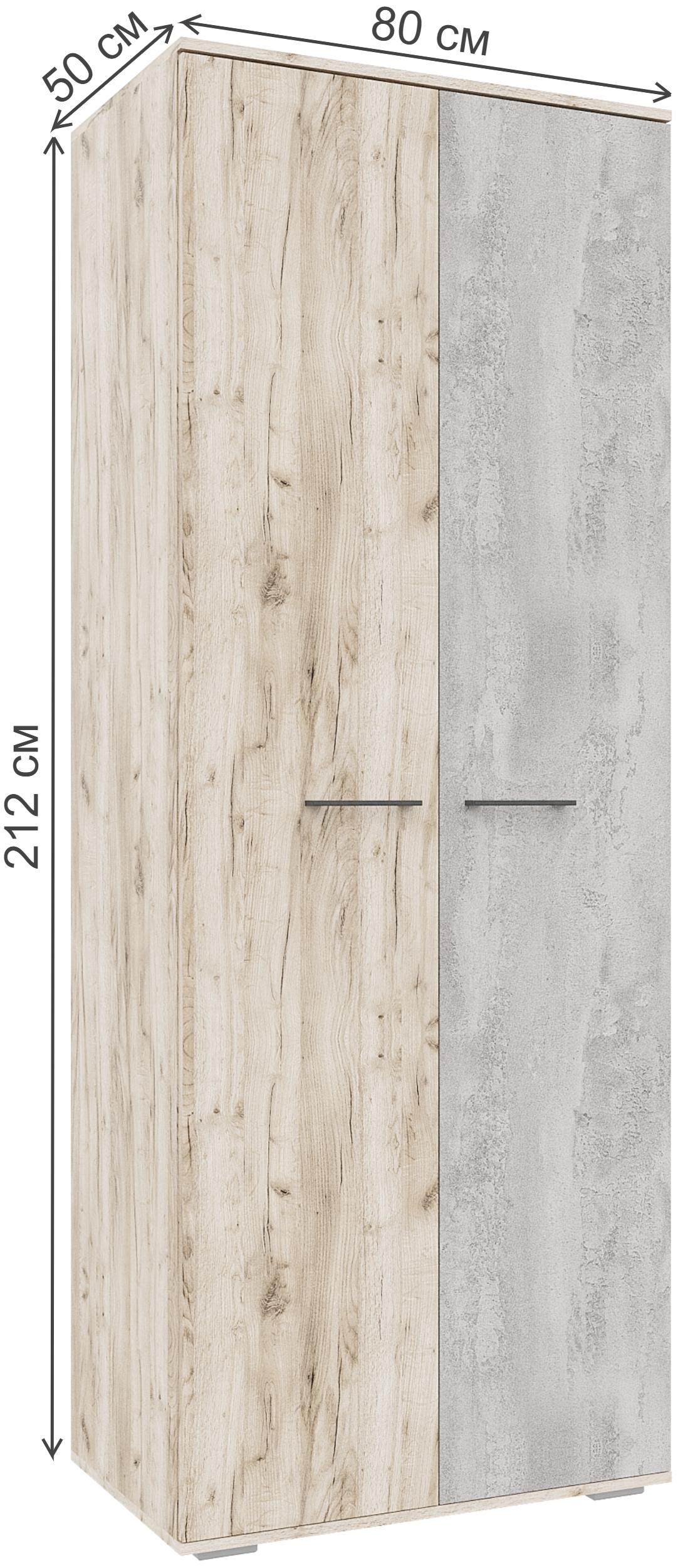 Материал каркаса - ЛДСП; Цвет каркаса - Дуб крафт серый / бетонный камень; Ширина - 80; Глубина - 50; Высота - 212;