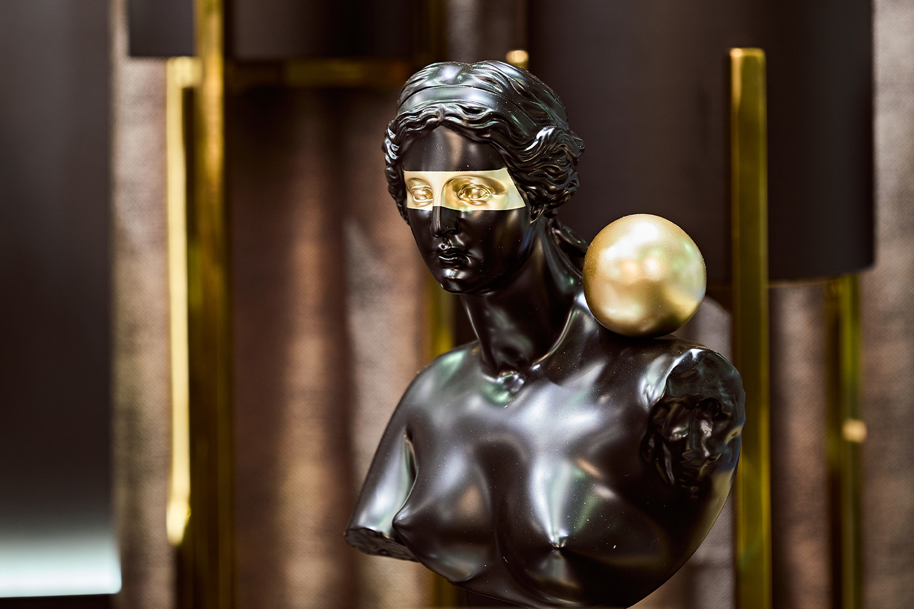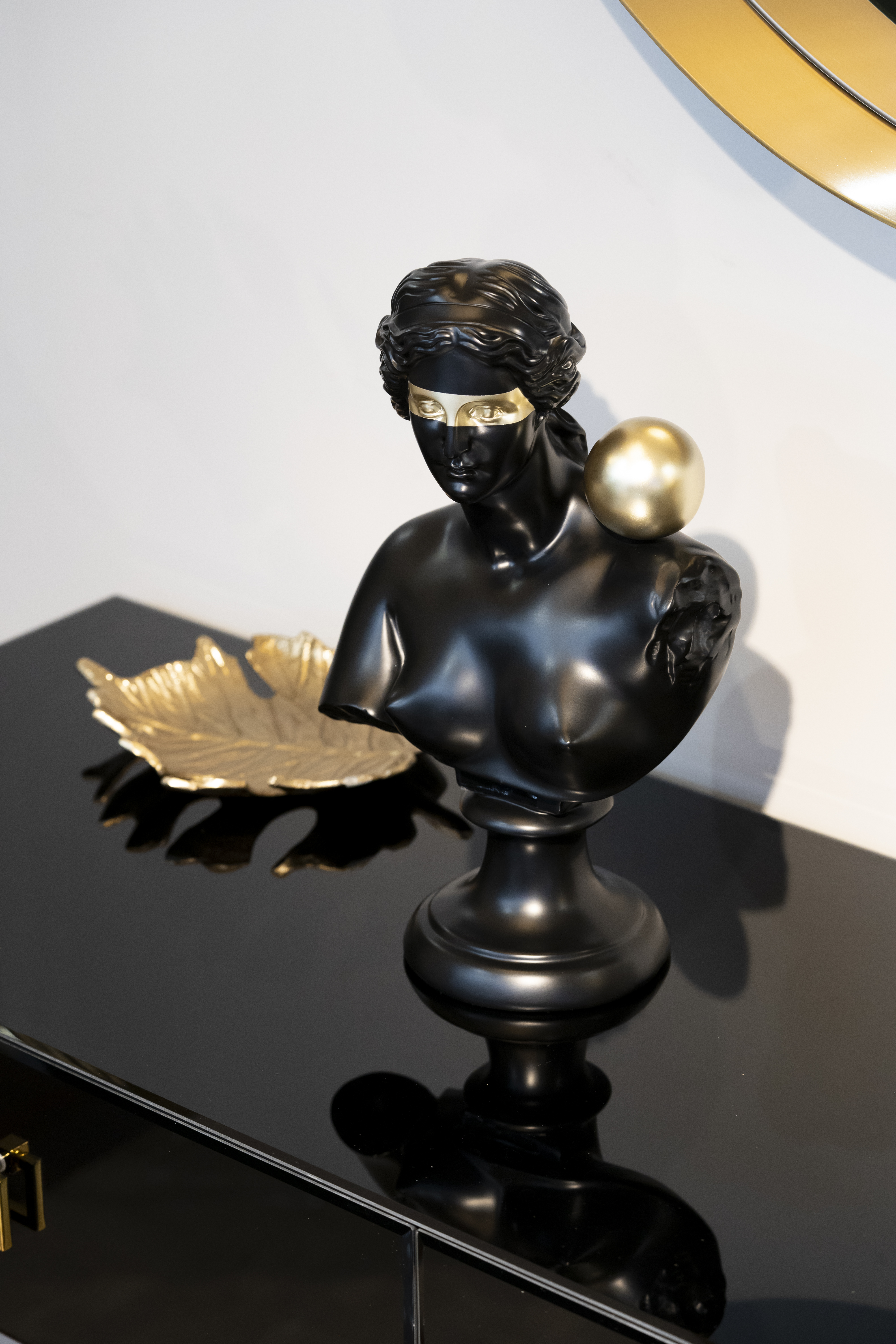 Эта статуэтка "Античный бюст" - это не просто отсылка к прошлому, это смелый и актуальный акцент для современного интерьера. Статуэтка черного цвета, с золотыми деталями, переосмысливает классическую форму, придавая ей загадочность и глубину.