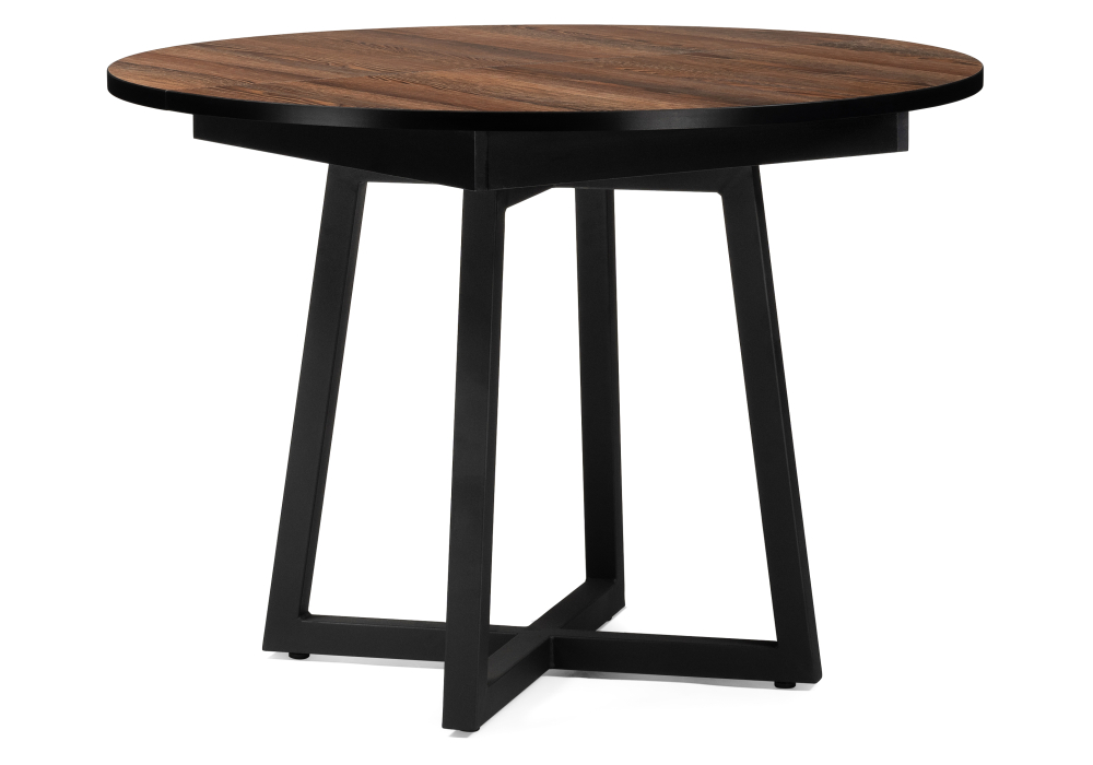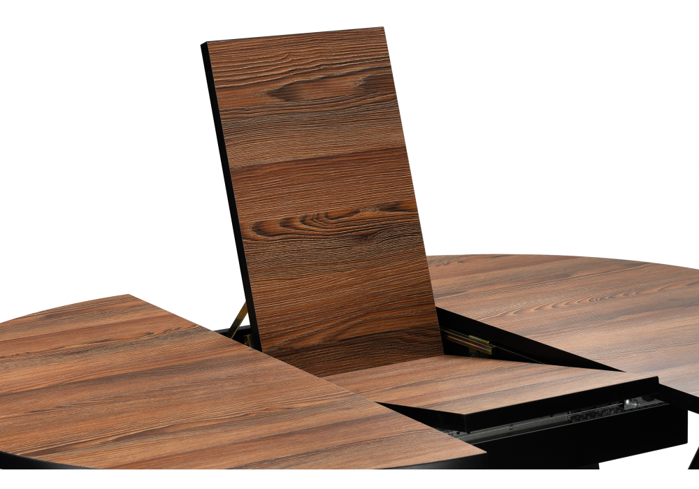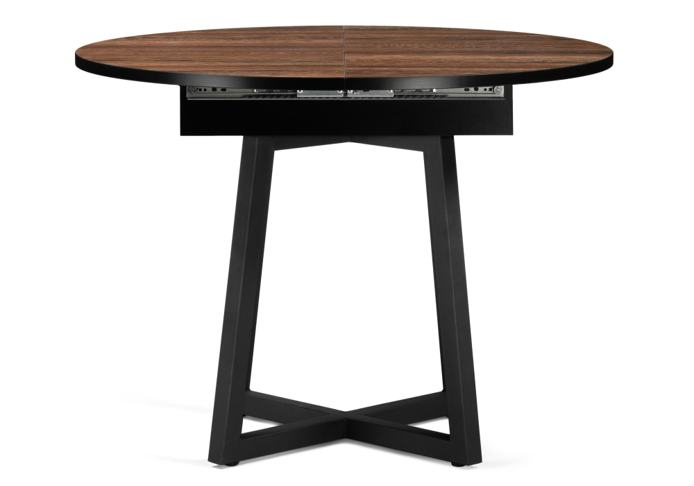 Толщина столешницы: 2,5 см. Материал каркаса - Металл; Материал ножек - Металл; Материал столешницы - ЛДСП; Цвет каркаса - Черный; Цвет ножек - Черный; Цвет столешницы - Орех; Цвет подстолья - Орех; Ширина - 100; Высота - 75; Длина стола в разложенном виде - 130; Длина - 100;