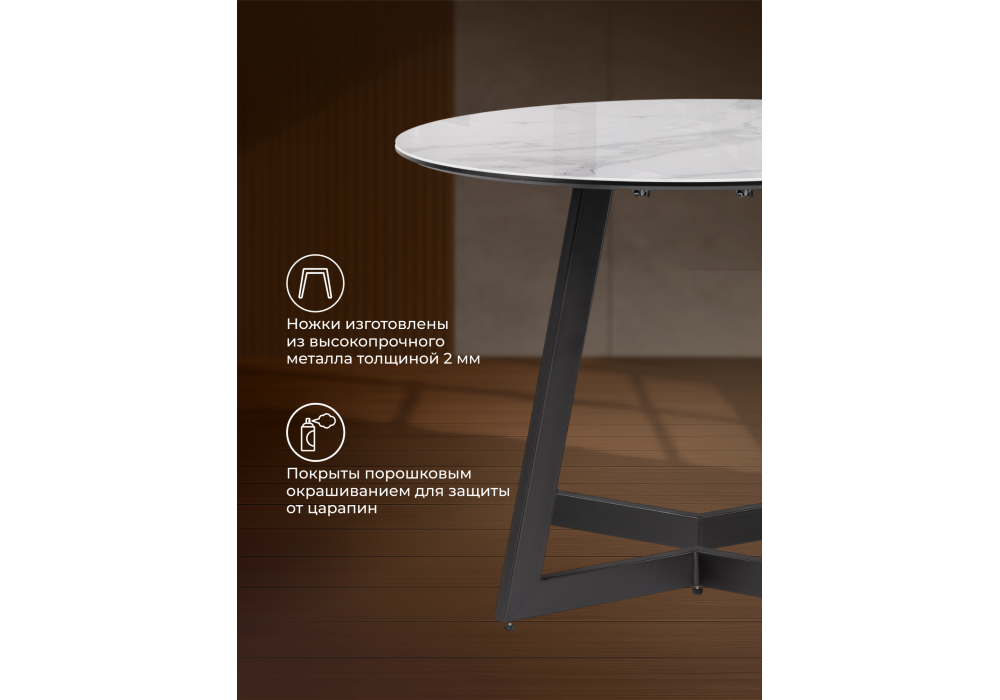 Стол стеклянный раздвижной Woodville Алинг 100(140)х100х76 белый мрамор / черный 532387 в Волгограде