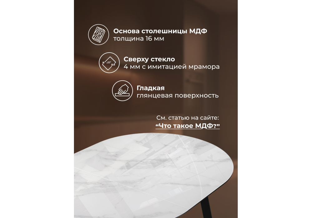 - Материал столешницы: стекло
