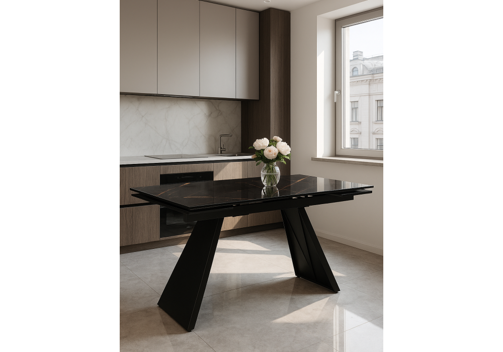 Купить "Стол стеклянный раздвижной Woodville Хорсборо 140(200)х80х79 обсидиан / черный 588007"
