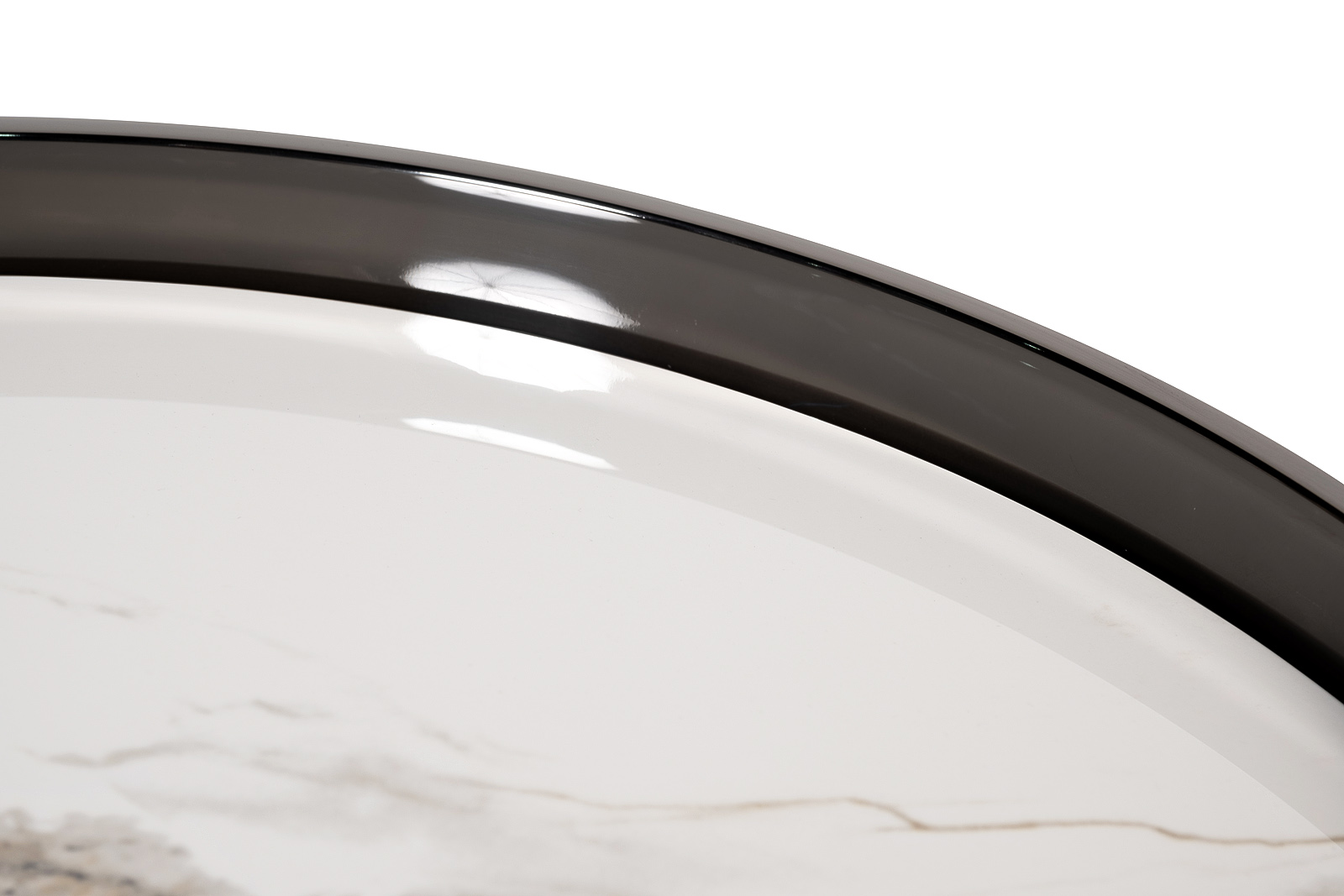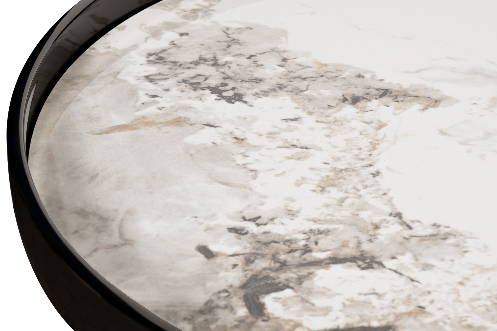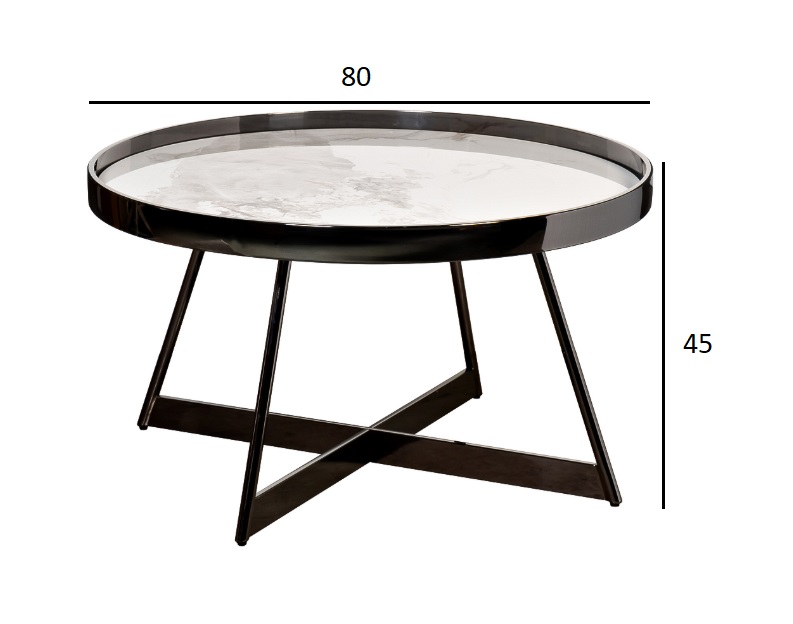 Этот журнальный столик — воплощение смелого диалога между материалами и оттенками. Его идеально круглая столешница из белоснежного керамогранита, вдохновлённого мраморным рисунком с его тонкими, едва уловимыми прожилками, излучает чистоту и легкость. Этот светлый акцент парит над строгим, графичным основанием из нержавеющей стали цвета черного хрома, создавая визуально притягательный контраст. Высокий бортик столешницы не только добавляет функциональности, но и подчеркивает четкость линий, присущую минималистичному дизайну. Тонкие, но прочные ножки, сходящиеся внизу, формируют устойчивую и при этом воздушную конструкцию. Такой дизайнерский столик органично впишется в пространство, где ценятся динамичные сочетания и современная эстетика. Этот объект не просто дополняет интерьер, он активно формирует его характер, привнося баланс утончённого вкуса и актуальных интерьерных трендов через игру света и тени на своих контрастных поверхностях. Толщина столешницы - 10мм.