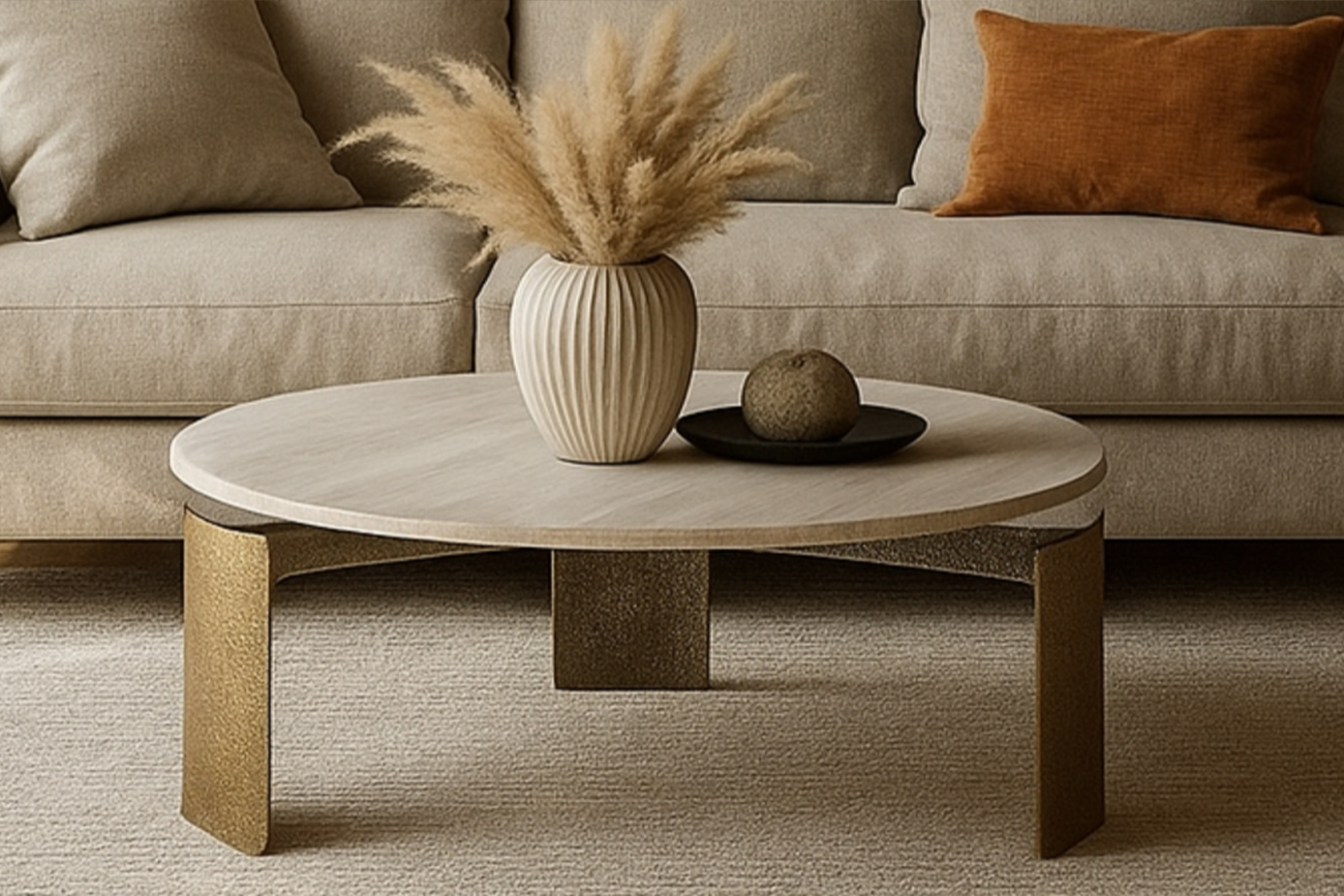 Этот круглый мраморный журнальный стол — идеальный диалог между классической роскошью и индустриальной практичностью. Круглая столешница, вырезанная из натурального мрамора, демонстрирует уникальный графический узор прожилок, что превращает предмет в неповторимый арт-объект. Материал привносит в интерьер ощущение долговечности и природной красоты, являясь вечным символом элегантности. Столешница поддерживается геометрическим алюминиевым основанием, которое придает столу современную устойчивость и визуальную легкость. Фактурная отделка металла служит идеальным противовесом мраморной текстуре. Этот дизайнерский мраморный стол создан для акцентной роли в гостиной, легко интегрируясь в стили от скандинавского до минимализма. Благодаря продуманной форме и благородным материалам, он моментально формирует фокусную точку, свидетельствуя о безупречном вкусе владельца. Толщина столешницы: 20мм.
