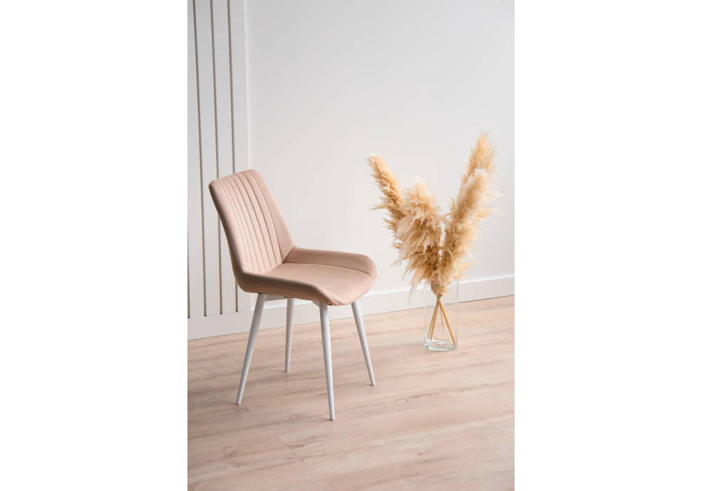 Материал каркаса - металл; Материал сиденья - велюр; Материал обивки - велюр; Цвет ножек - белый; Ширина - 50; Глубина - 56; Высота - 82; Ширина сиденья - 47; Глубина сиденья - 42; Высота сиденья - 48;