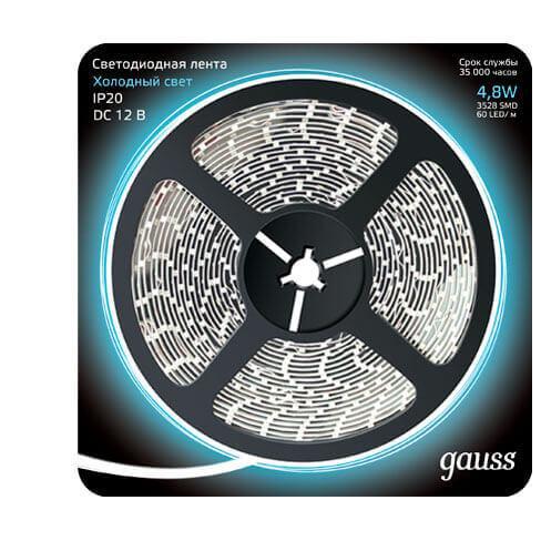 Светодиодная лента Gauss 4, 8W/m 60LED/m 2835SMD холодный белый 5M 312000305 в Волгограде