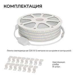 Комплект светодиодной влагозащищенной ленты Apeyron 10W/m 120LED/m 2835SMD холодный белый 15M 10-145