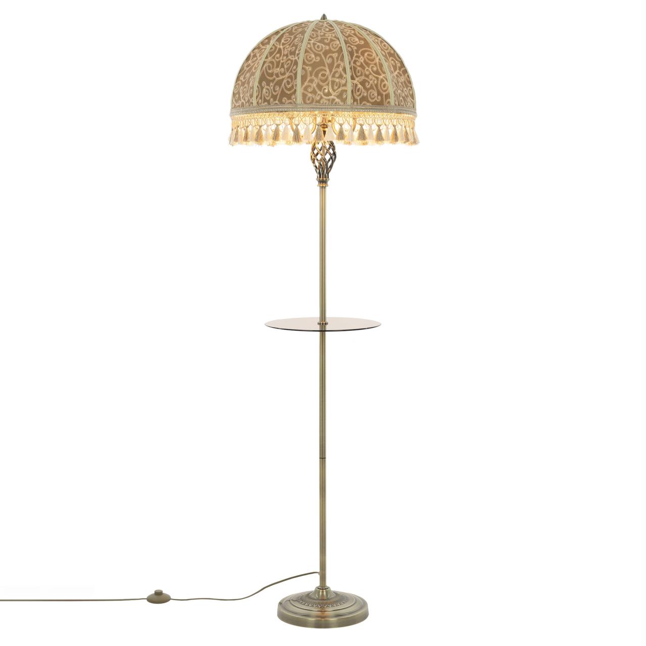 Великолепный торшер со столиком Citilux Базель CL407935T выполнен в классическом стиле. Корпус металлический, благородного бронзового цвета. Устойчивое основание украшено искусным орнаментом, верхняя часть стойки с красивым витым декоративным элементом. Абажур тканевый цвета капучино, декорирован оригинальной вышивкой и обшит бахромой. Удобный круглый столик изготовлен из закалённого тонированного стекла.