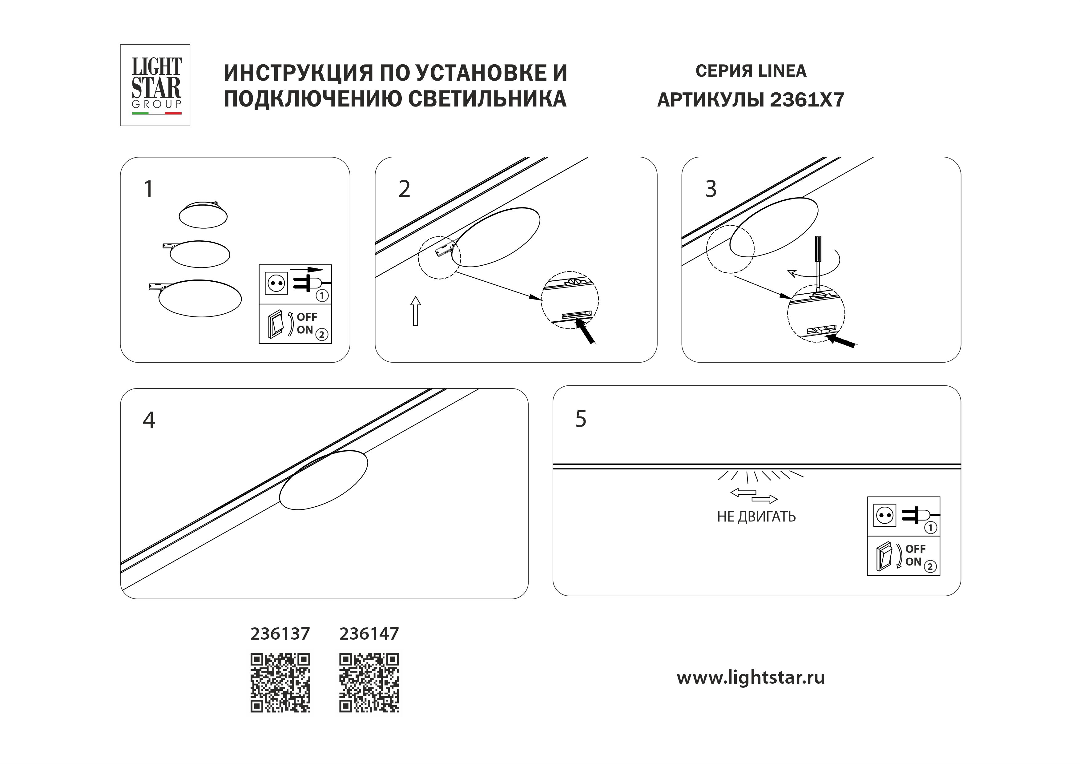 Трековый однофазный светильник 24V 5W 200° 4000K Lightstar Linea 236147 в Волгограде