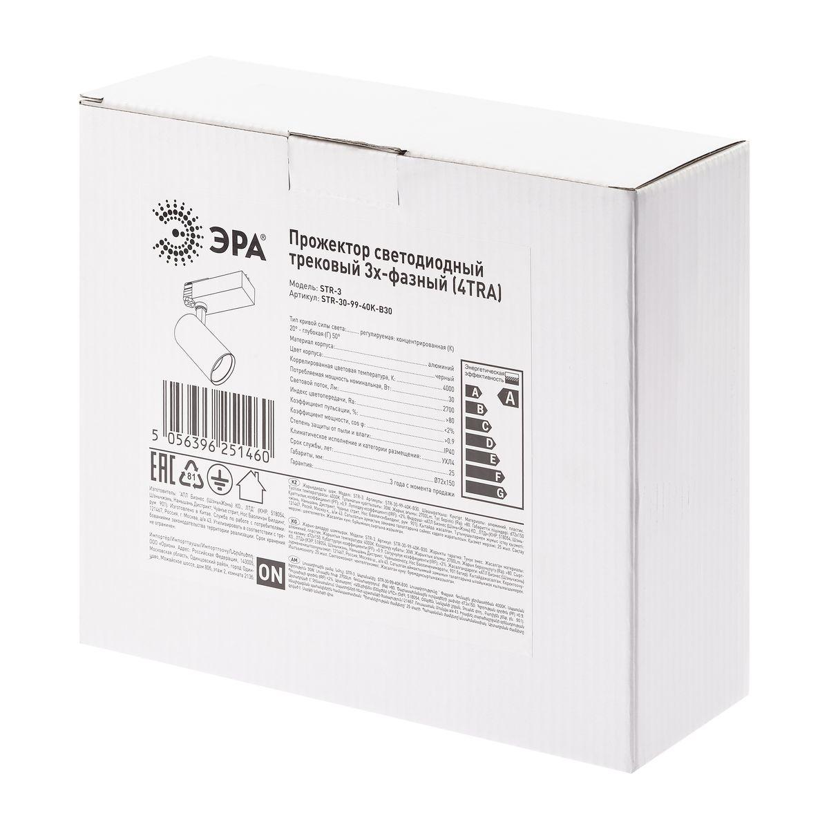 Трековый светодиодный светильник ЭРА STR-30-99-40K-B30 Б0049791 в Волгограде